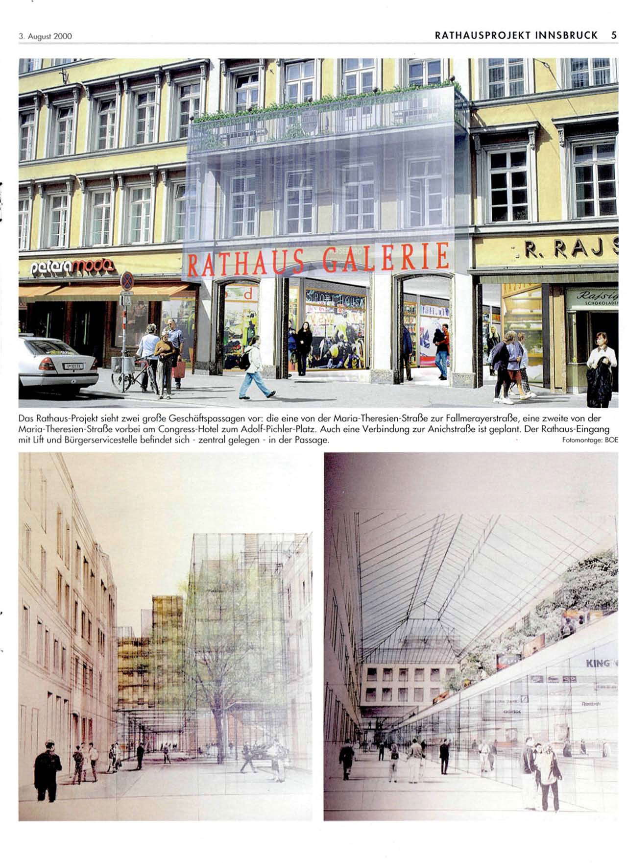 Das Rathaus-Projekt sieht zwei große Geschäftspassagen vor: die eine von der Maria-Theresien-Straße zur Fallmerayerstraße, eine zweite von der