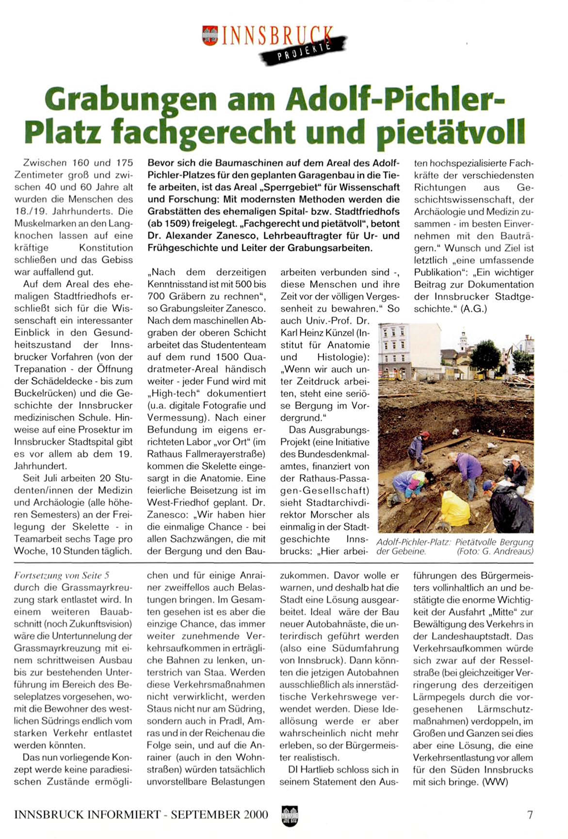 Grabungen am Adolf-PichlerPlatz fachgerecht und pietätvoll