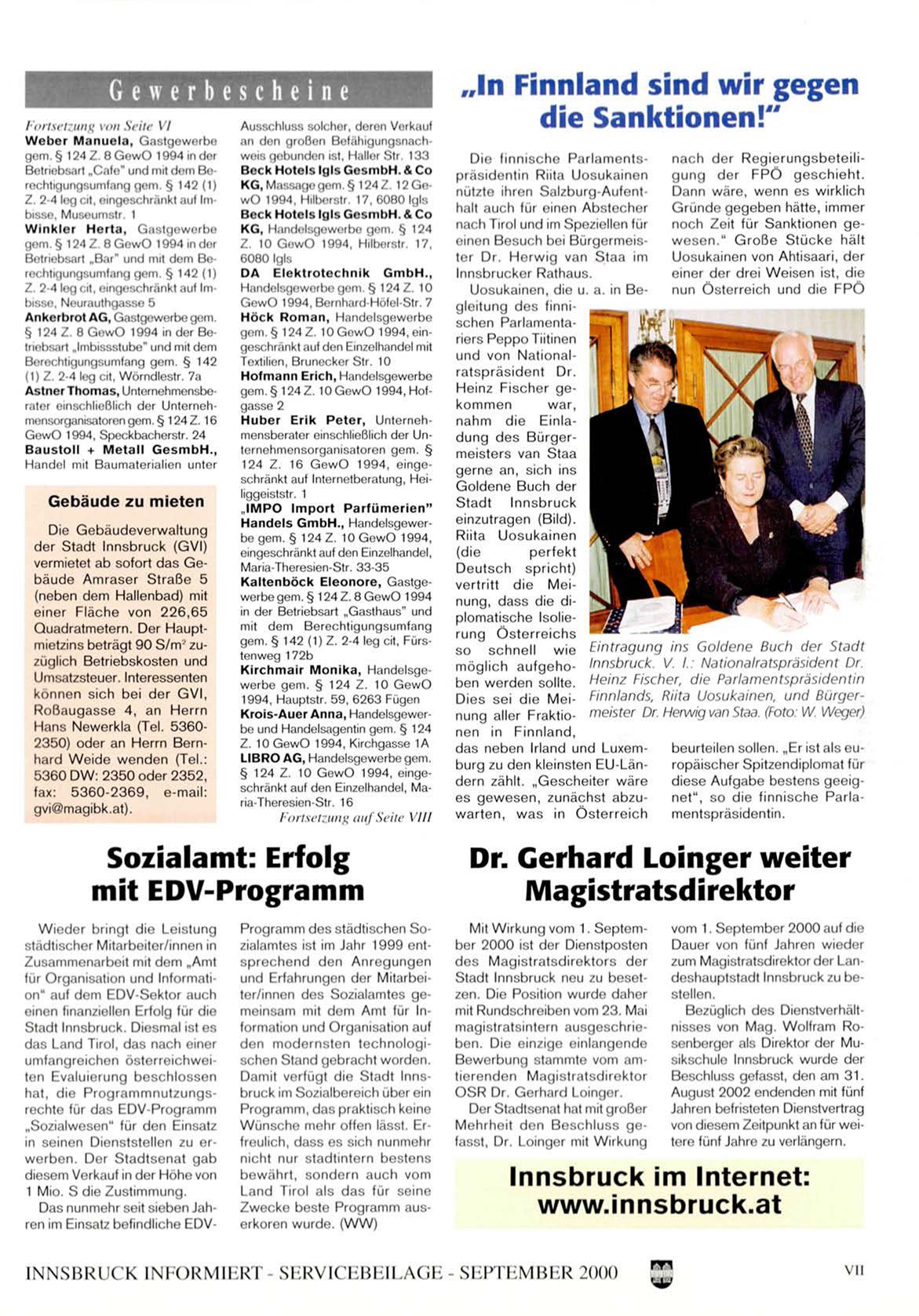 Dies sei die Mei- Finnlands, Riita Uosukainen, und Bürgernung aller Fraktio- meister Dr. Herwig van Staa. (Foto: W. Weger)