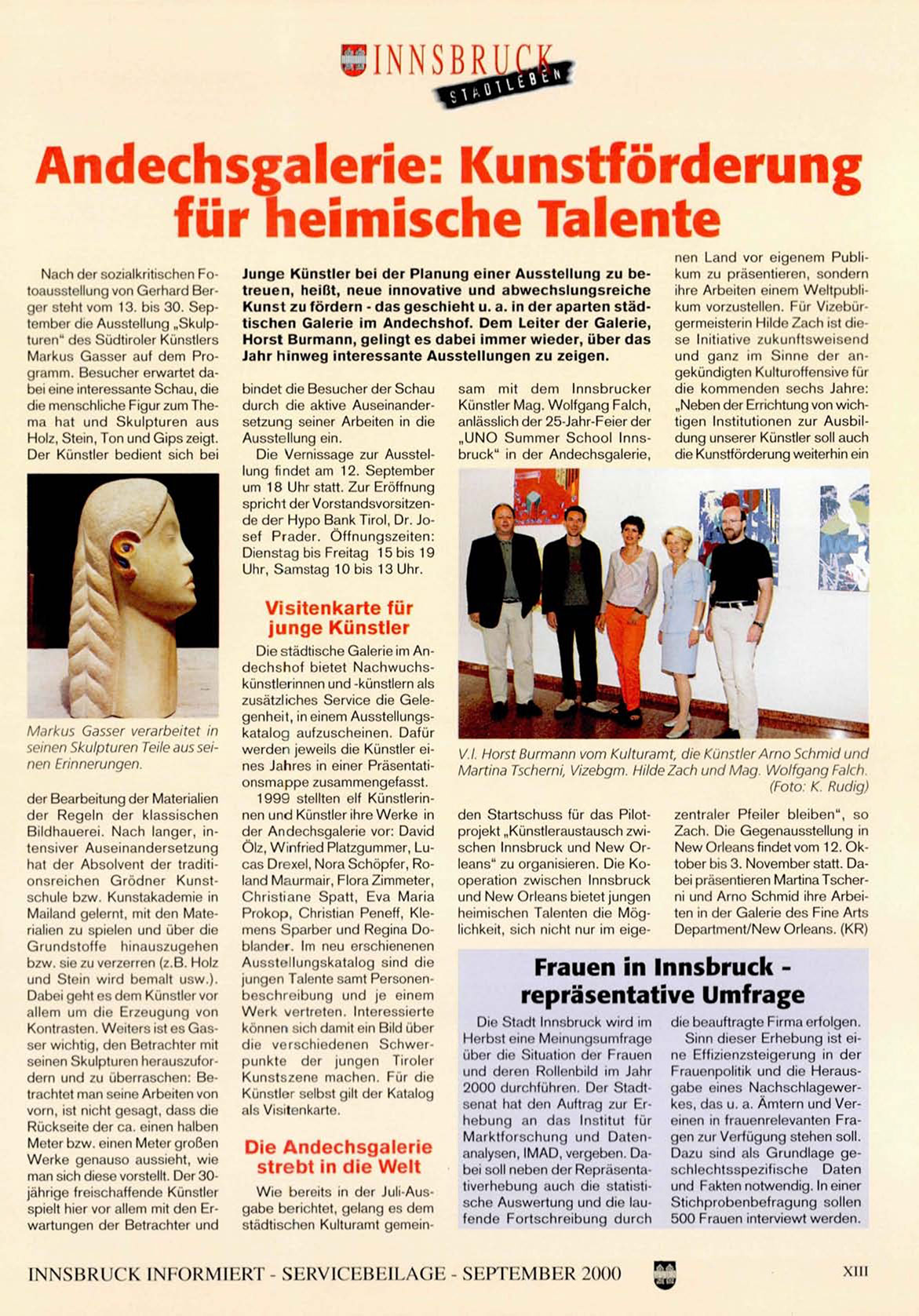 i,,", strtil vom 13. bis 30. September die Ausstellung „Skulpturen" des Südtiroler Künstlers