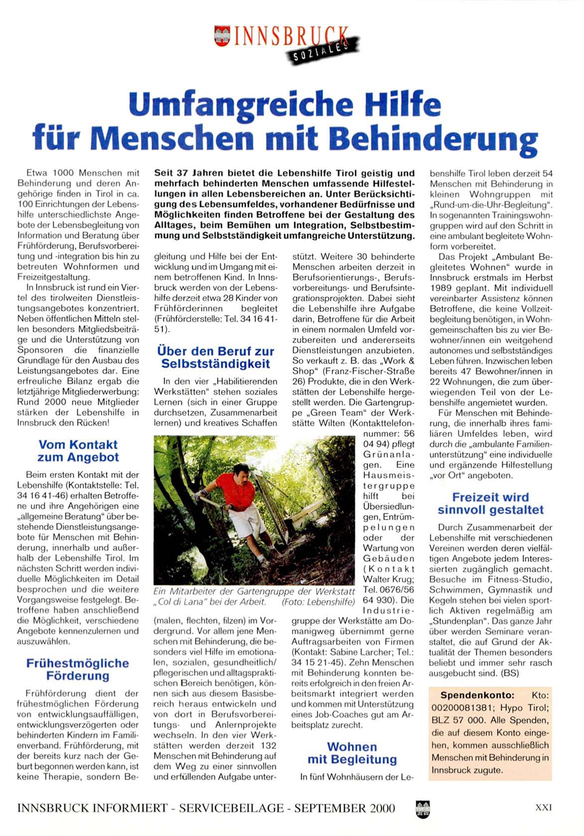 INNSBRUCK INFORMIERT- SERVICEBEIEAGE - SEPTEMBER 2000