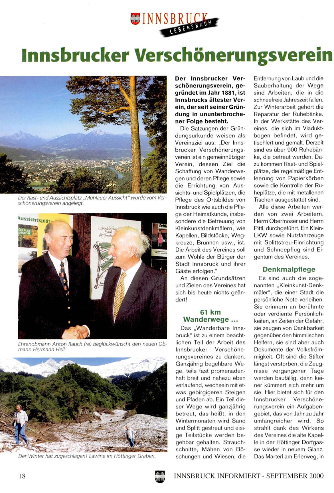 Vereinsziel aus: „Der Innsbrucker Verschönerungsverein ist ein gemeinnütziger