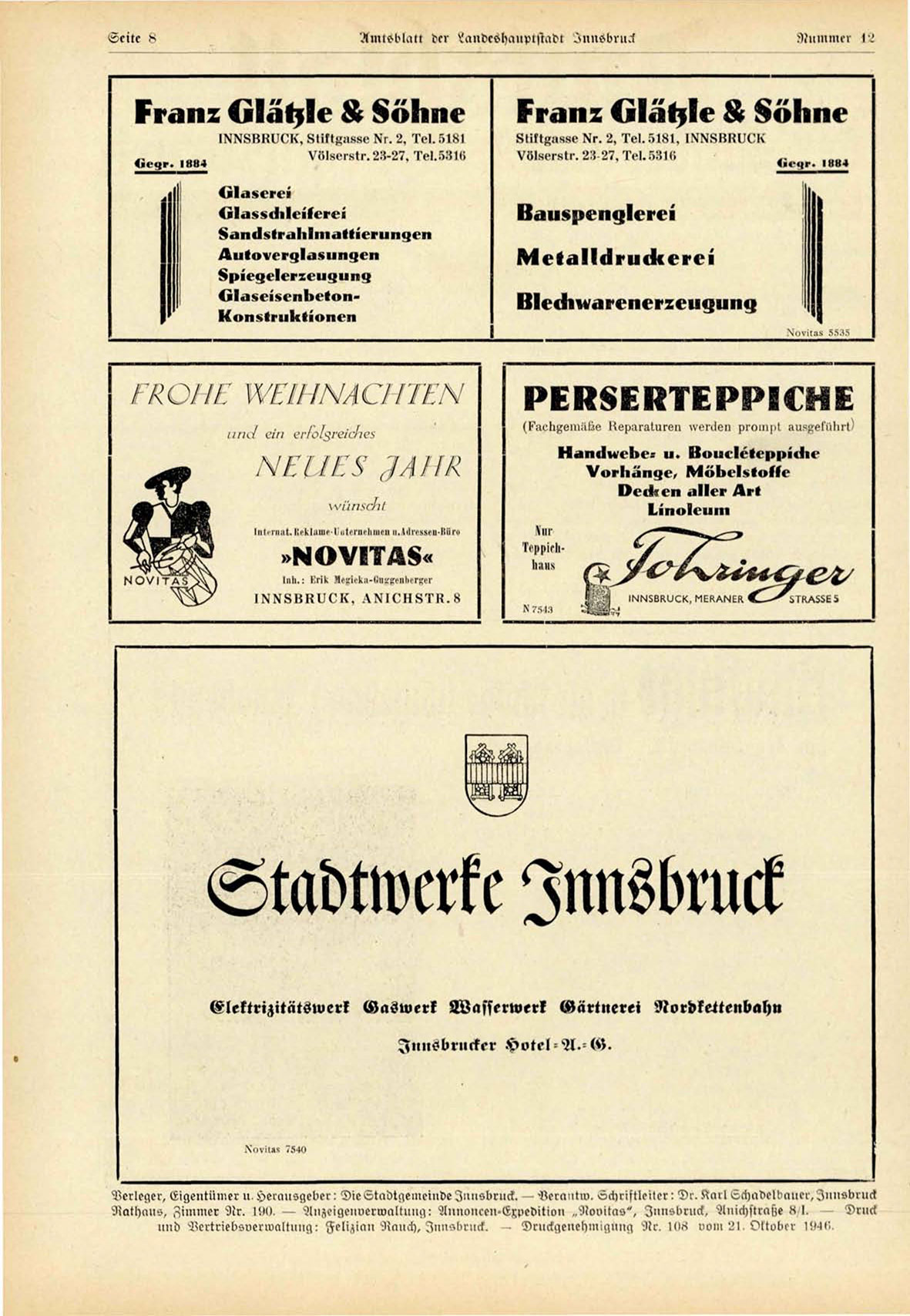 und Vertriebsuerwaltilng: Felizian Nanch, Innsbrncl. — Drllckgenel)inigun^ ^tr, I<>>