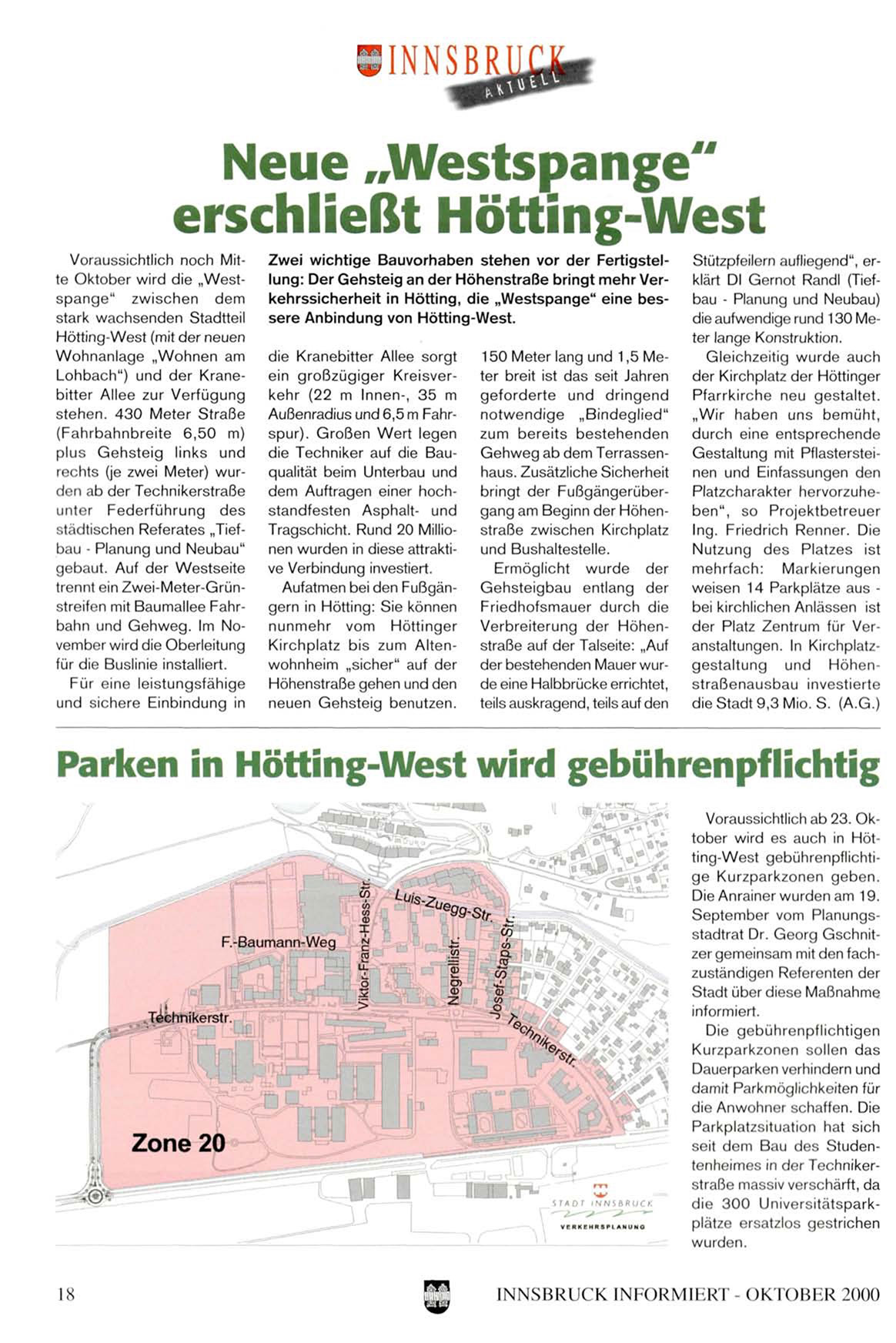 Zwei wichtige Bauvorhaben stehen vor der Fertigstellung: Der Gehsteig an der Höhenstraße bringt mehr Verkehrssicherheit in Hötting, die „Westspange" eine bessere Anbindung von Hötting-West.