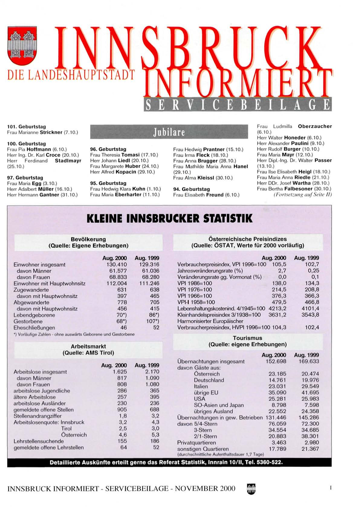 INNSBRUCK INIORMIhRI - SliRVlCI-müLAGB - NOVIiMBI-R 2000