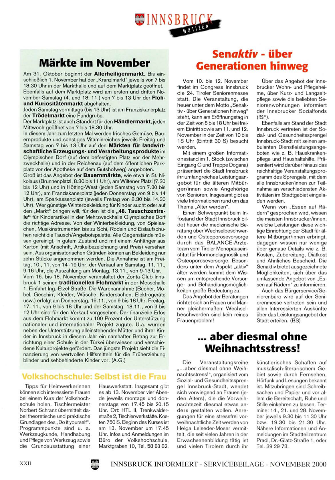 INNSBRUCK INFORMIERT- SERVICEBEILAGE - NOVEMBER 2000