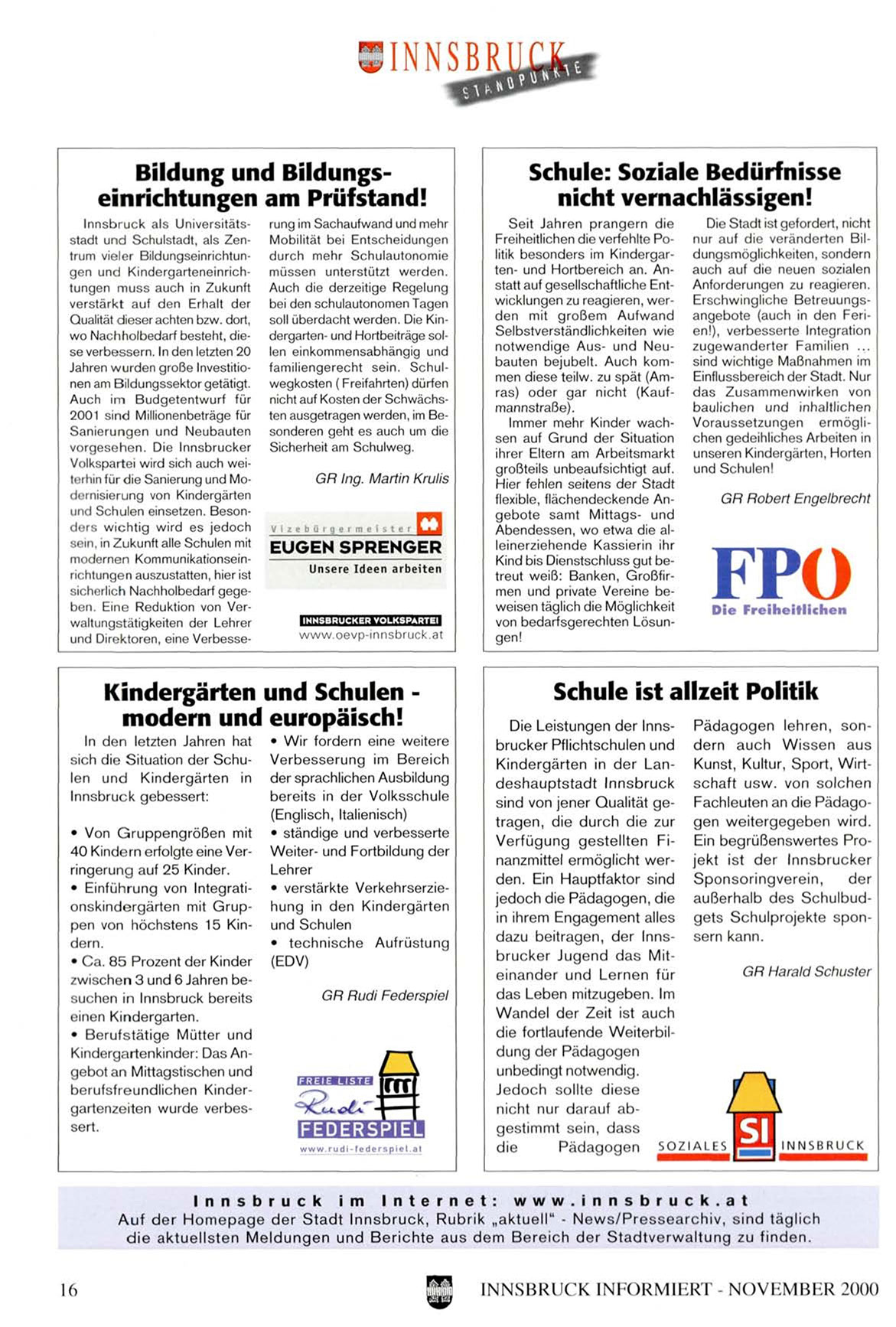Innsbruck als Universitätsstadt und Schulstadt, als Zentrum vieler Bildungseinrichtungen und Kindergarteneinrichtungen rnuss auch in Zukunft