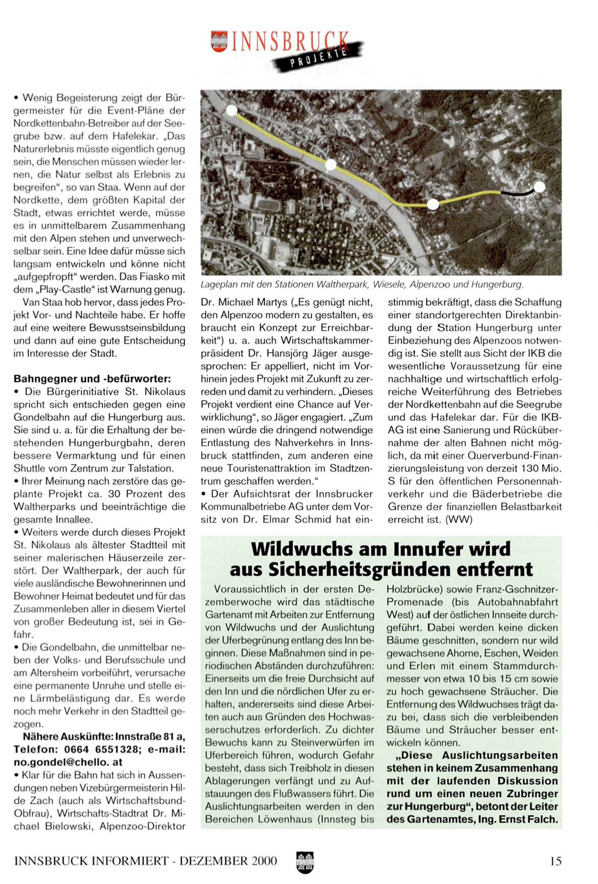 und das Hafelekar dar. Für die IKBAG ist eine Sanierung und Rückübernahme der alten Bahnen nicht möglich, da mit einer Querverbund-Finanzierungsleistung von derzeit 130 Mio.