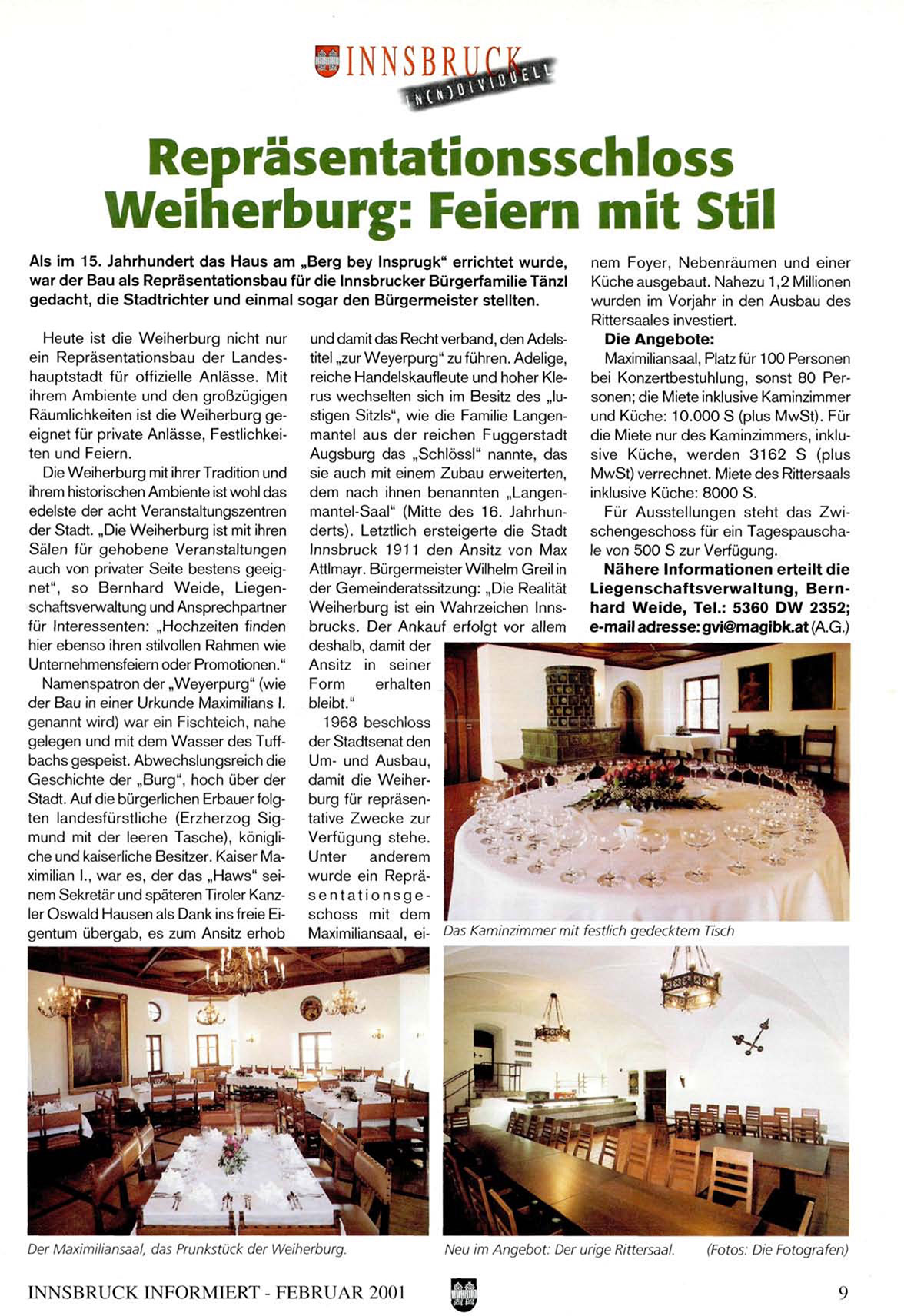 Liegenschaftsverwaltung, Bernhard W e i d e , Tel.: 5360 DW 2352;