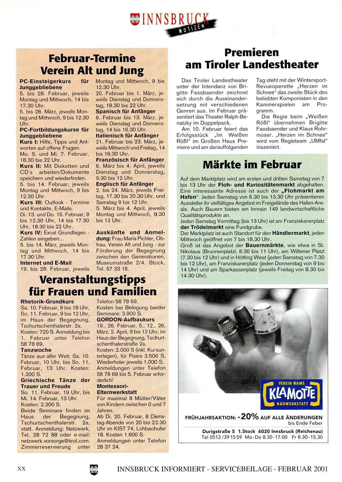 INNSBRUCK INFORMIERT - SERVICEBEILAGE - FEBRUAR 2001