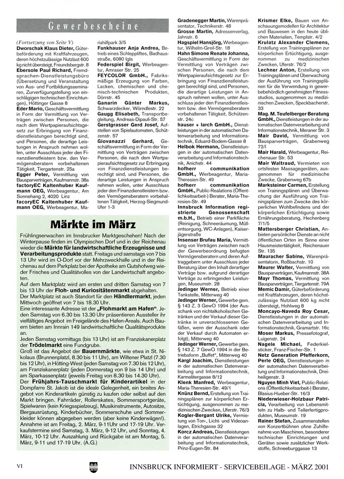 INNSBRUCK INFORMIERT - SERVICEBEILAGE - MÄRZ 2001