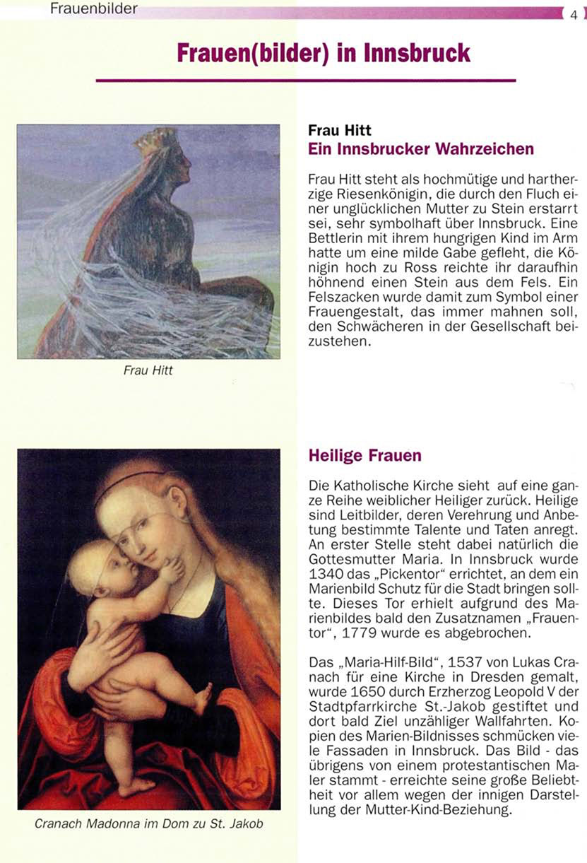 dort bald Ziel unzähliger Wallfahrten. Kopien des Marien-Bildnisses schmücken viele Fassaden in Innsbruck. Das Bild - das