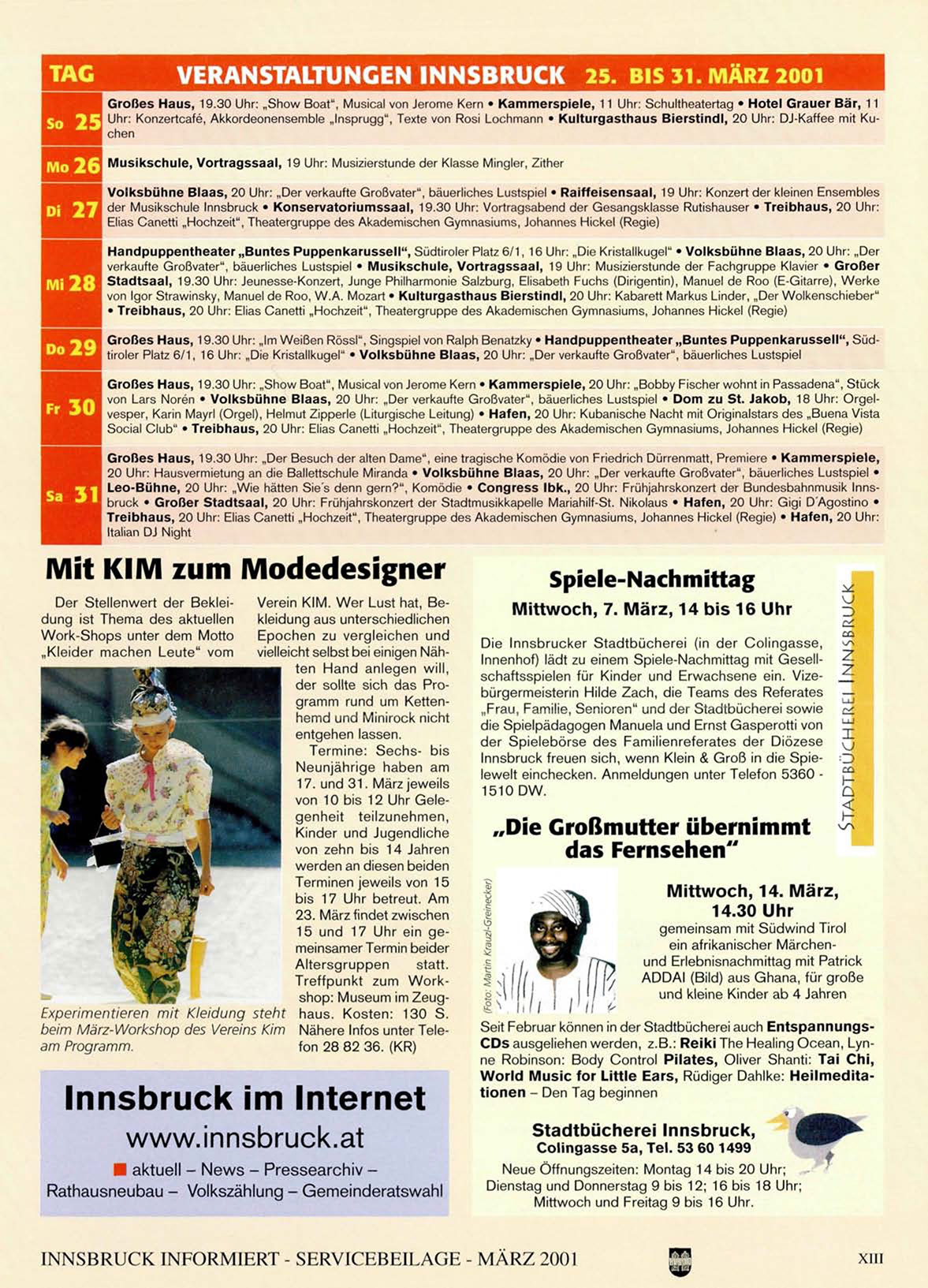 INNSBRUCK INFORMIERT - SERVICEBEILAGE - MÄRZ 2001
