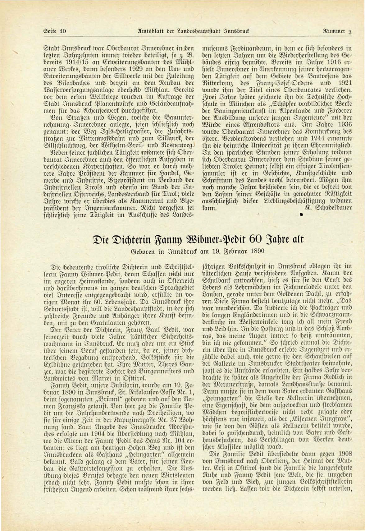 Stadt Innsbruck war Oberbaurat Innerebner iu den