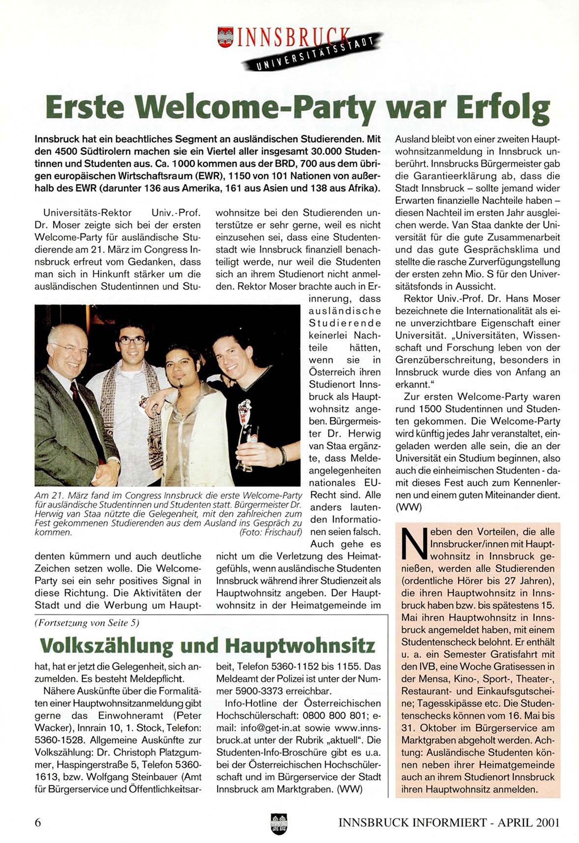 Welcome-Party für ausländische Studierende am 2 1 . März im Congress Innsbruck erfreut vom Gedanken, dass