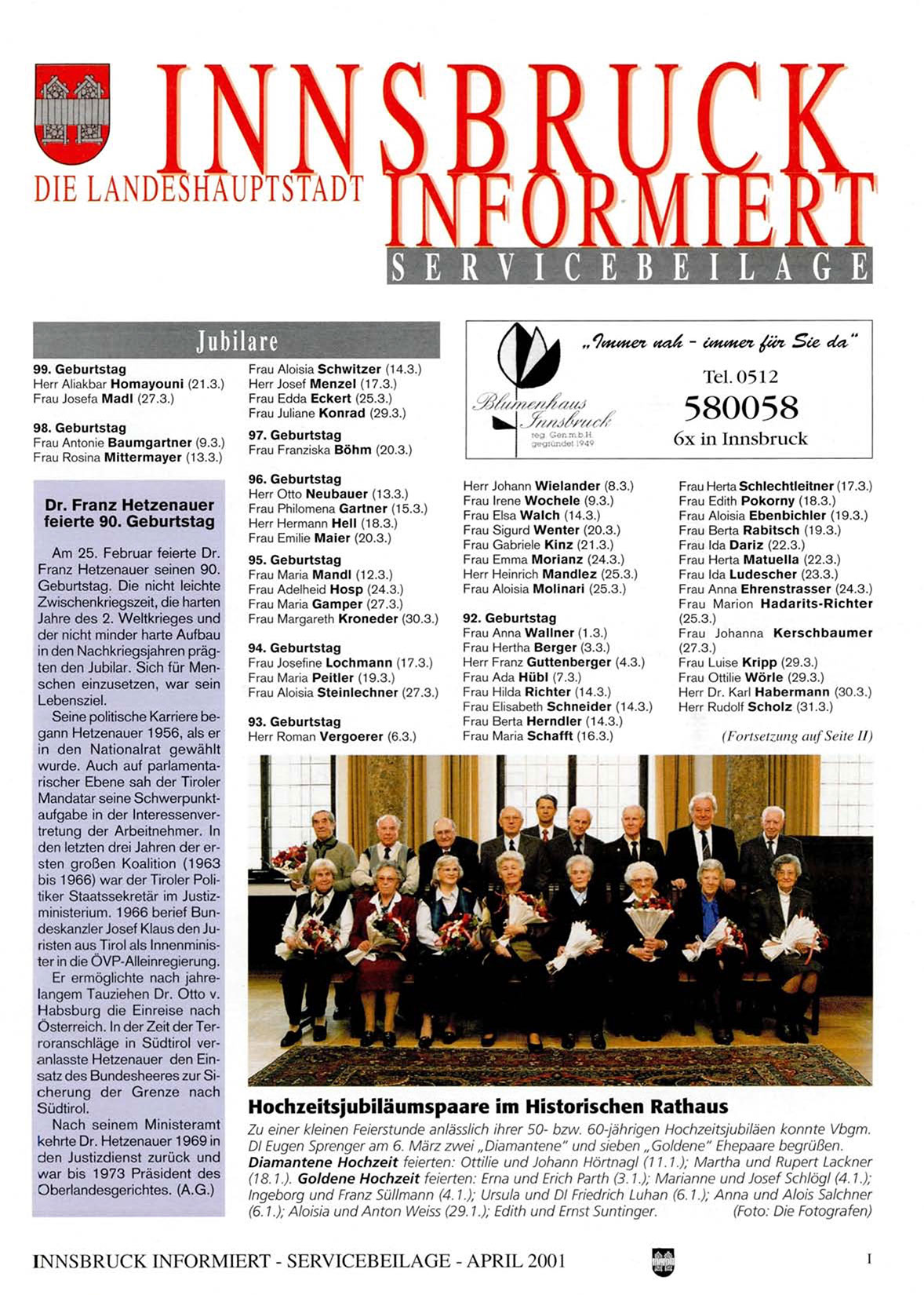 INNSBRUCK INFORMIERT - SERVICEBEILAGE - APRIL 2001