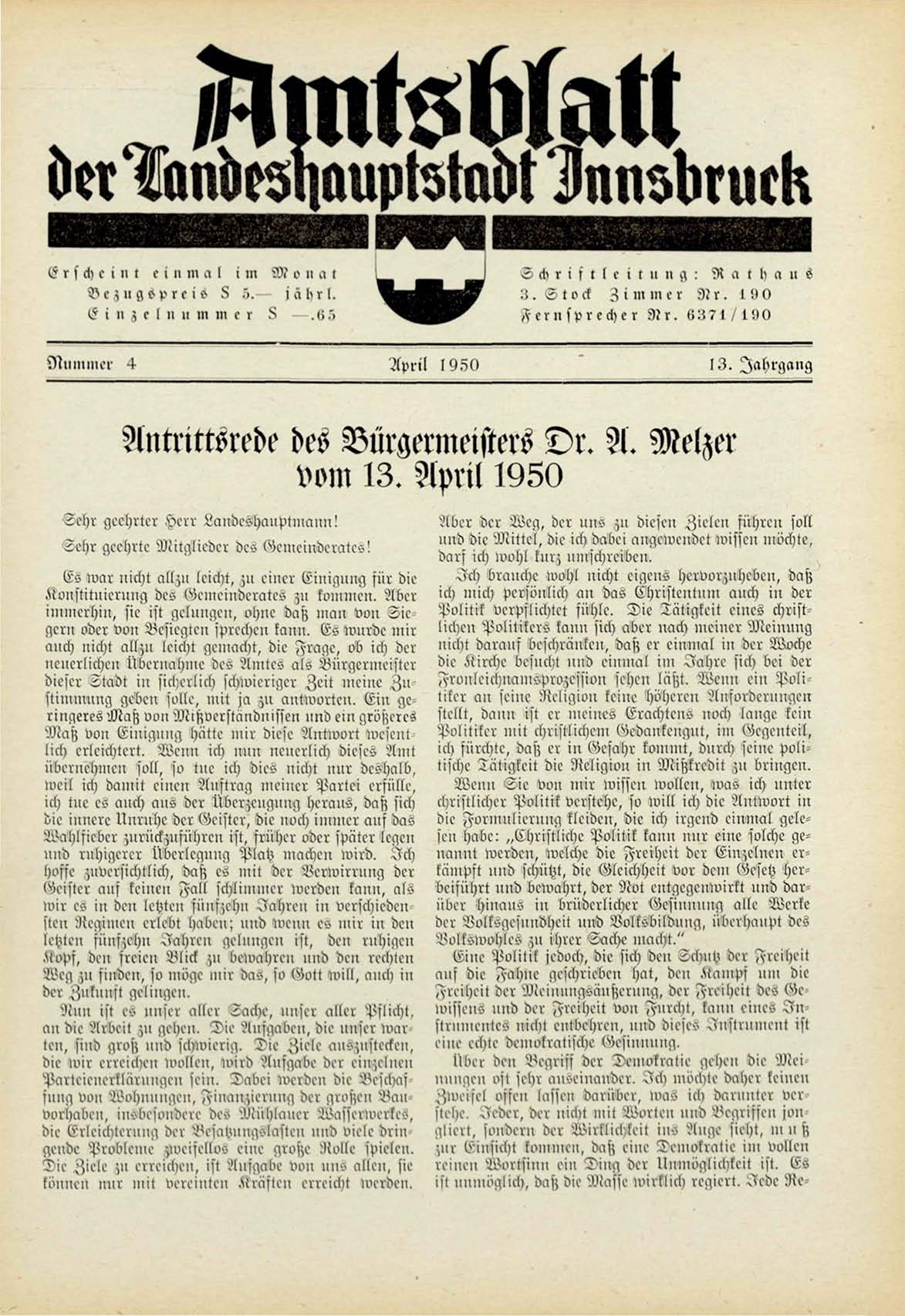 Antrittsrede des Bürgermeisters Dr. A. Melzer