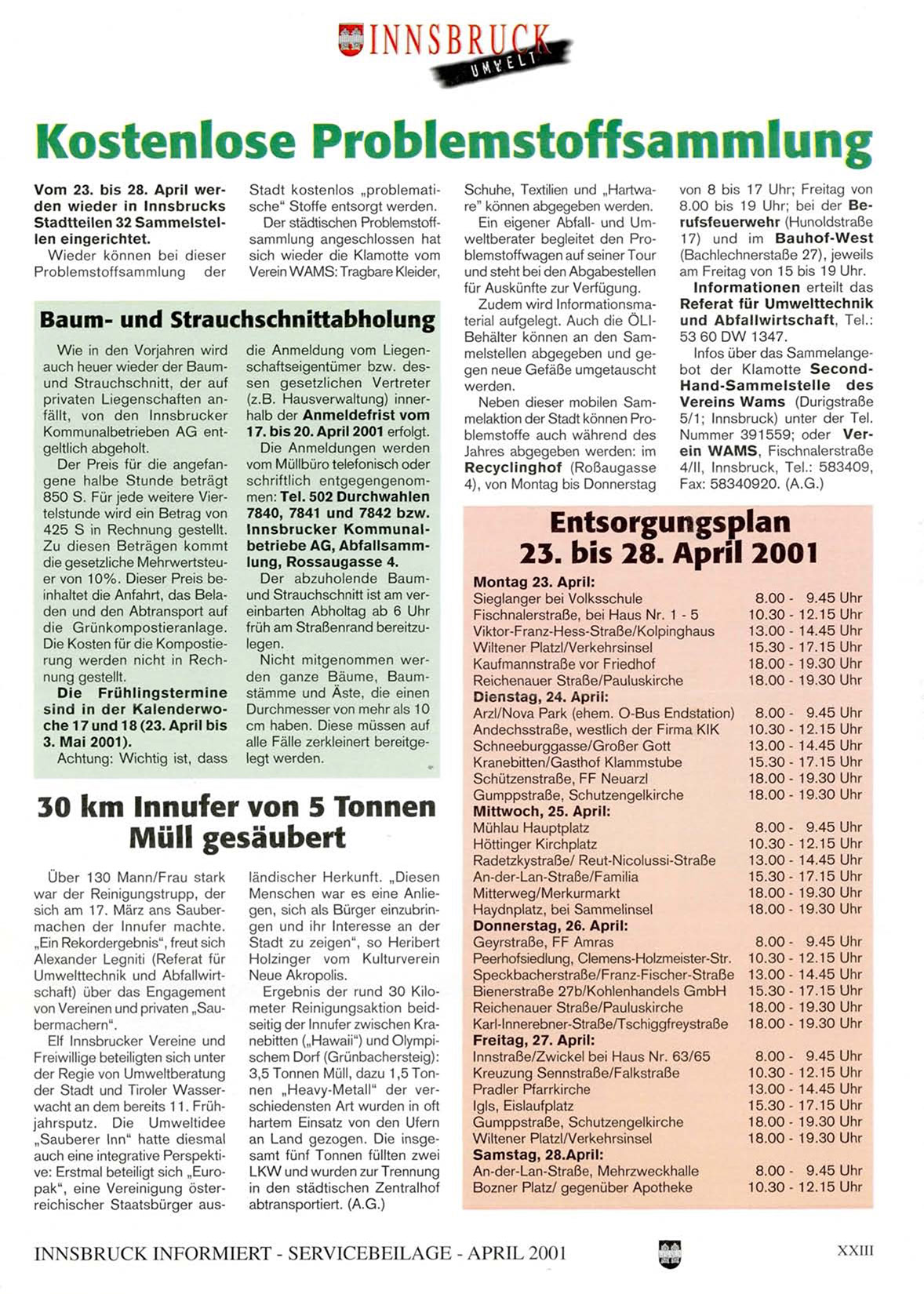 INNSBRUCK INFORMIERT - SERVICEBEILAGE - APRIL 2001