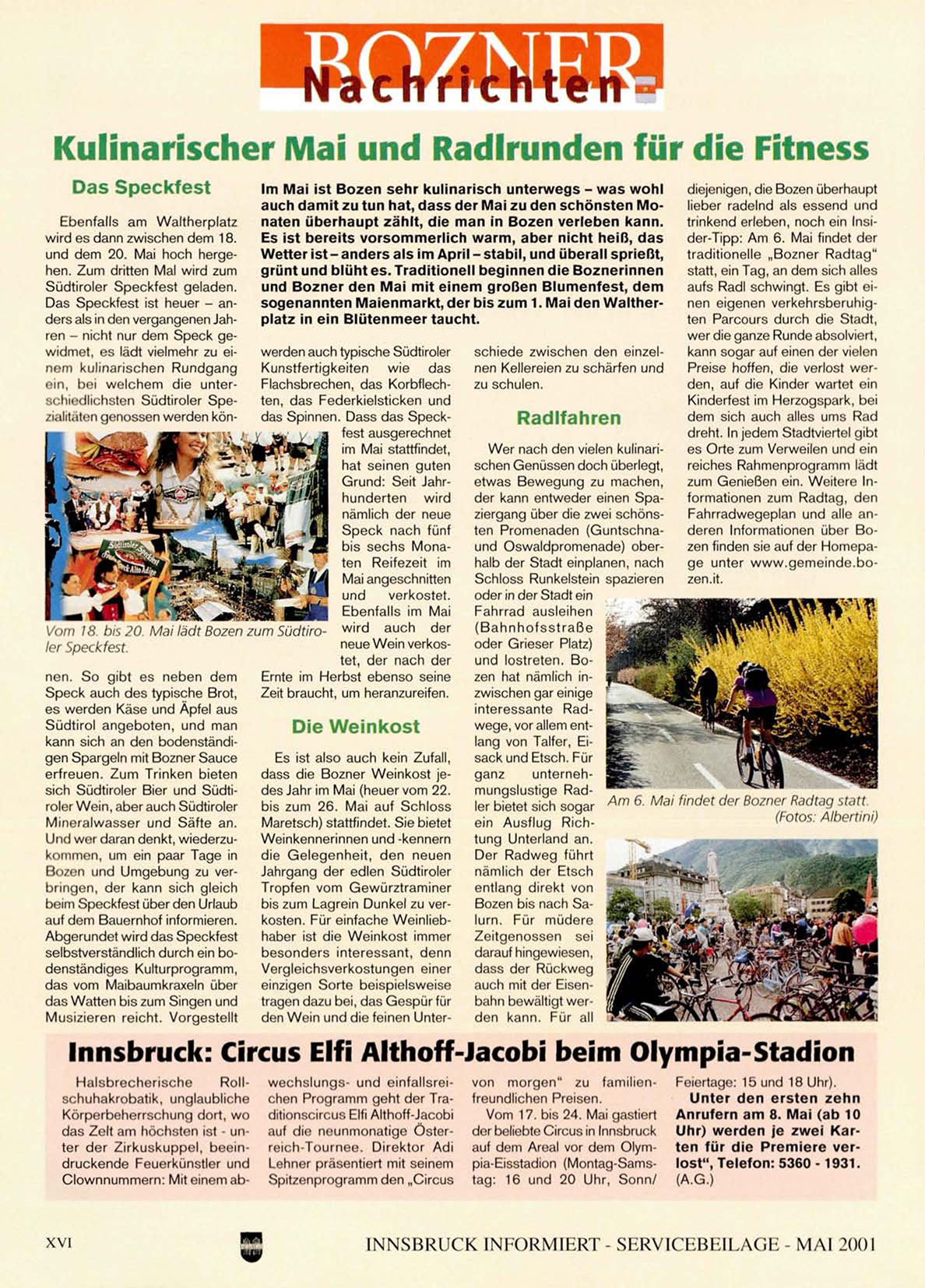 auch d a m i t z u t u n hat, d a s s der Mai zu d e n s c h ö n s t e n M o naten ü b e r h a u p t z ä h l t , die m a n in B o z e n v e r l e b e n k a n n .