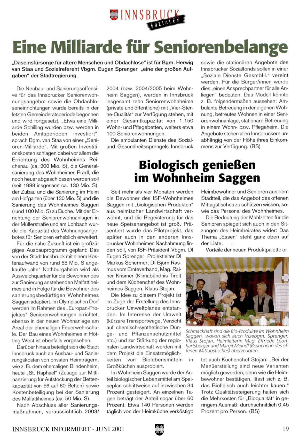 sprach Bgm. van Staa von einer „Senioren-Milliarde". Mit großen Investitionskosten schlagen dabei vor allem die