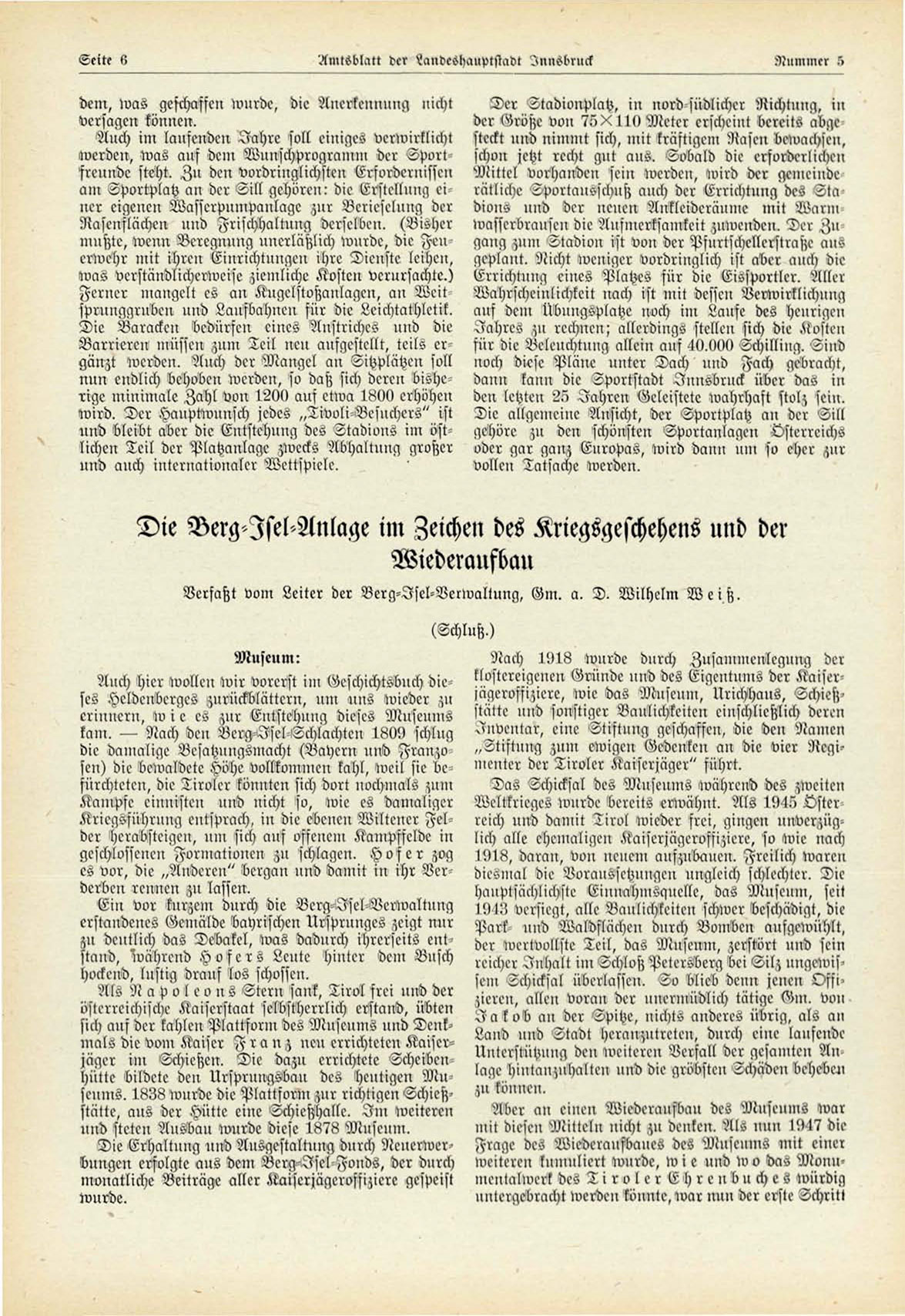 düngen erfolgte ans dein Berg-Isel Fonds, der dnrch