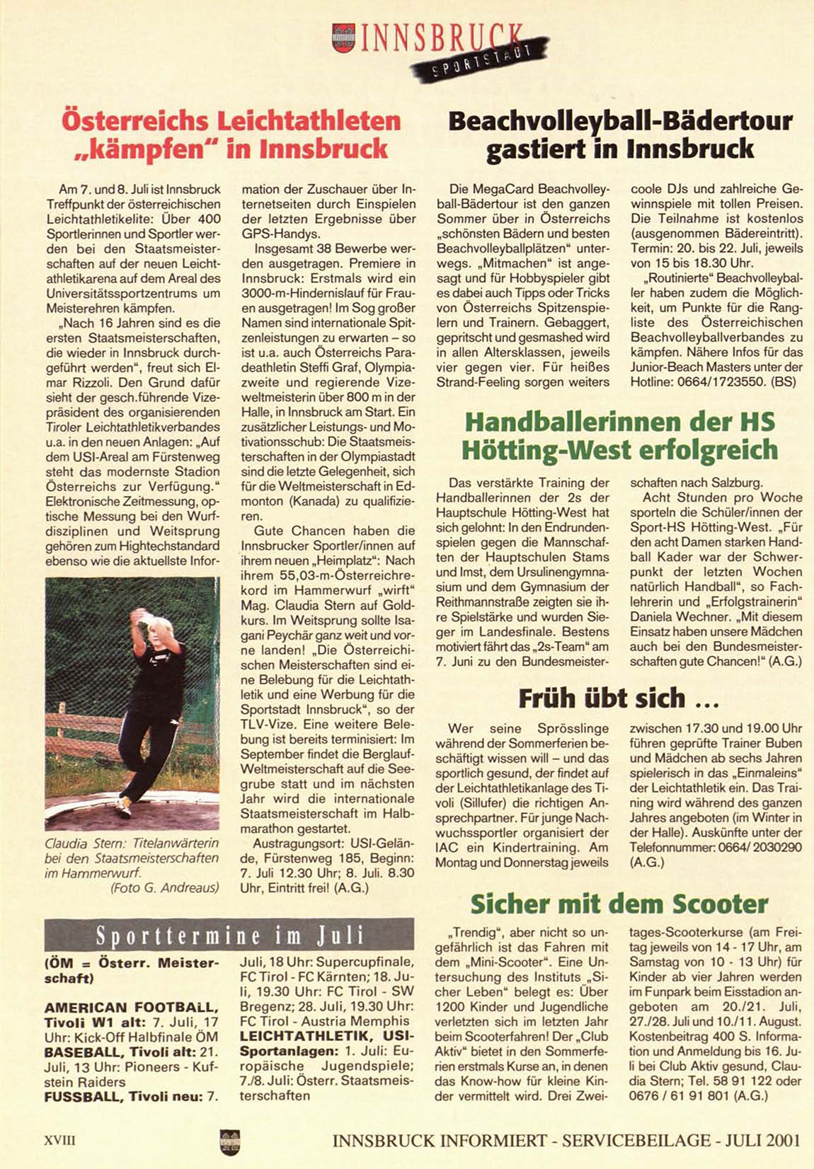 I N N S B R U C K INFORMIERT - S E R V I C E B E I L A G E - JULI 2001