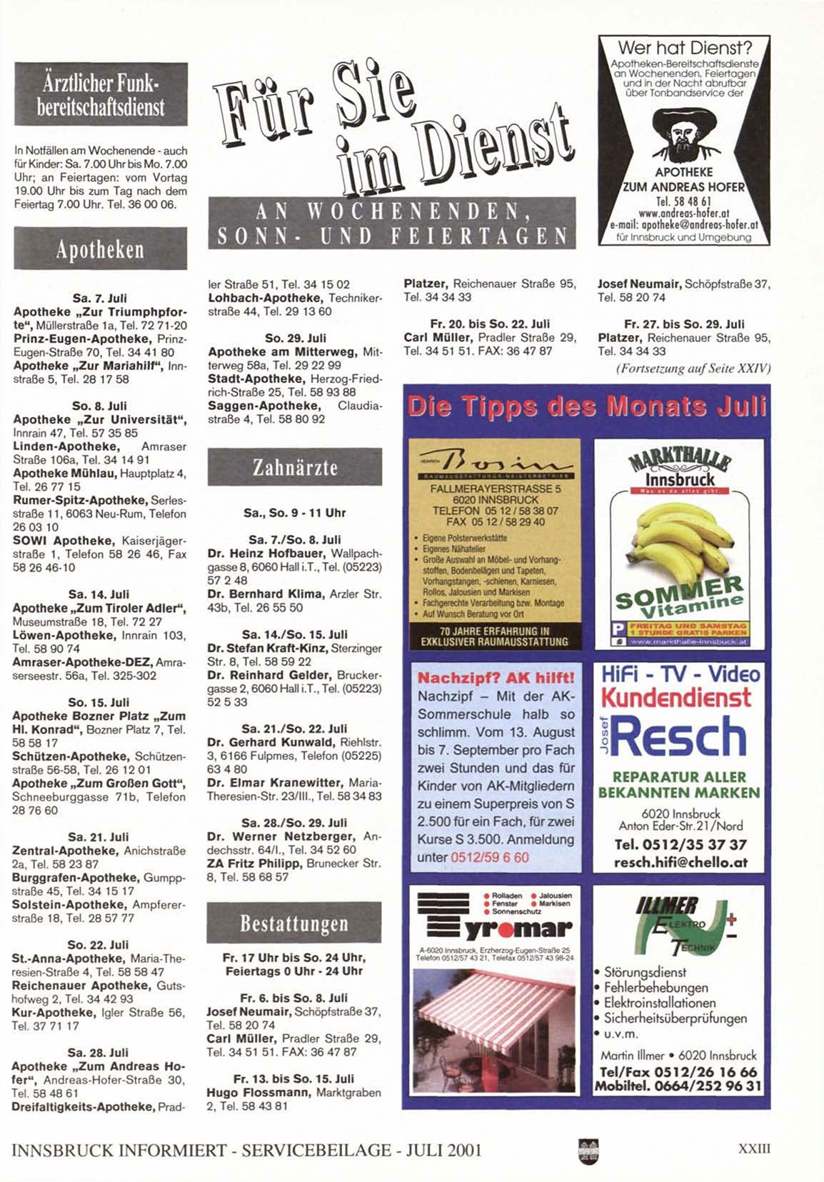 INNSBRUCK INFORMIERT - SERVICEBEILAGE - JULI 2001