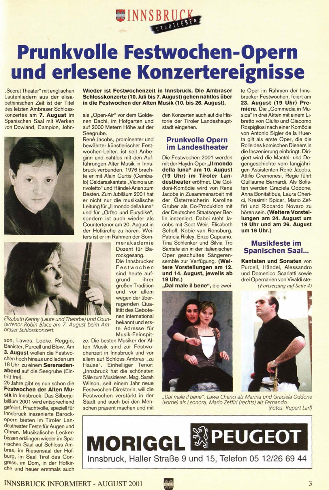 wochen-Leiter, ist seit Anbeginn und nahtlos mit den AufDie Festwochen 2001 werden