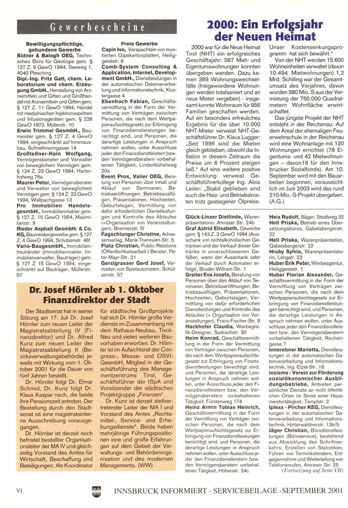I N N S B R U C K INFORMIERT - SERVICEBEILAGE -SEPTEMBER 2001