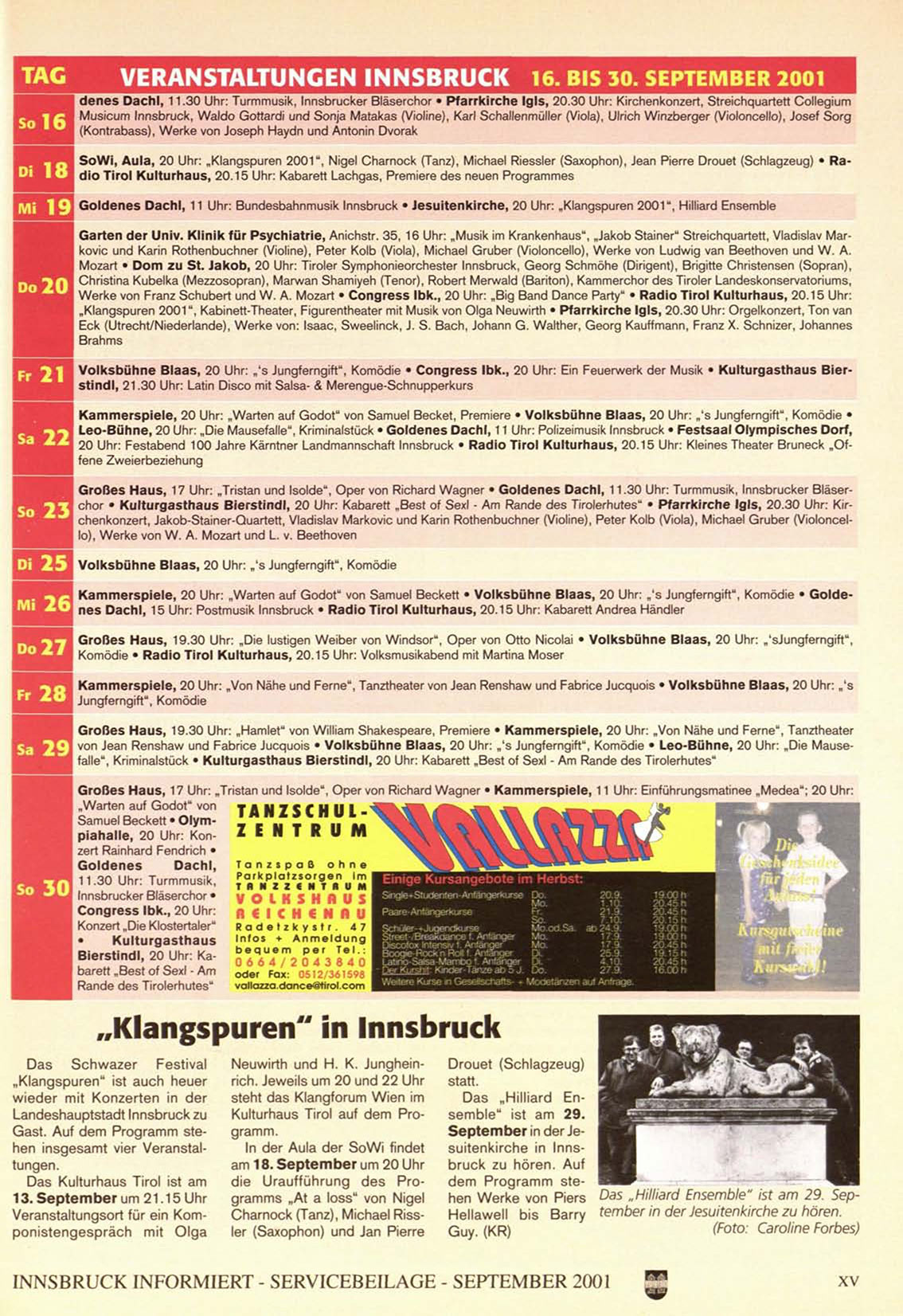 I N N S B R U C K INFORMIERT - SERVICEBEILAGE - SEPTEMBER 2001
