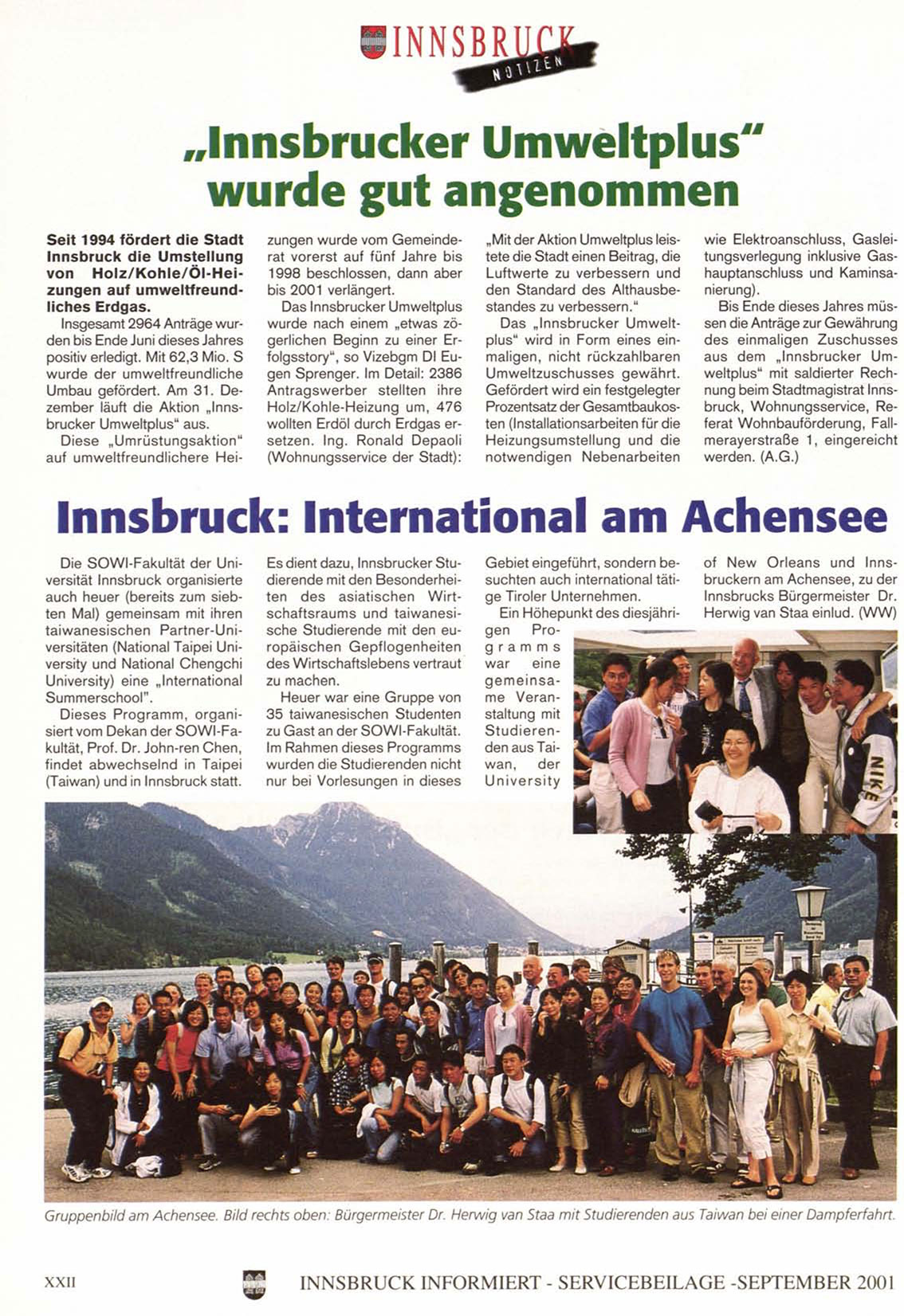 I N N S B R U C K INFORMIERT - S E R V I C E B E I L A G E -SEPTEMBER 2001