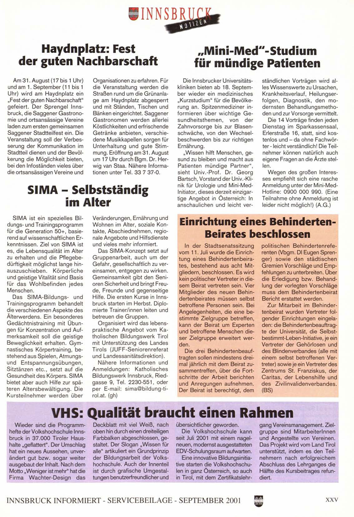 I N N S B R U C K INFORMIERT - SERVICEBEILAGE - SEPTEMBER 2001