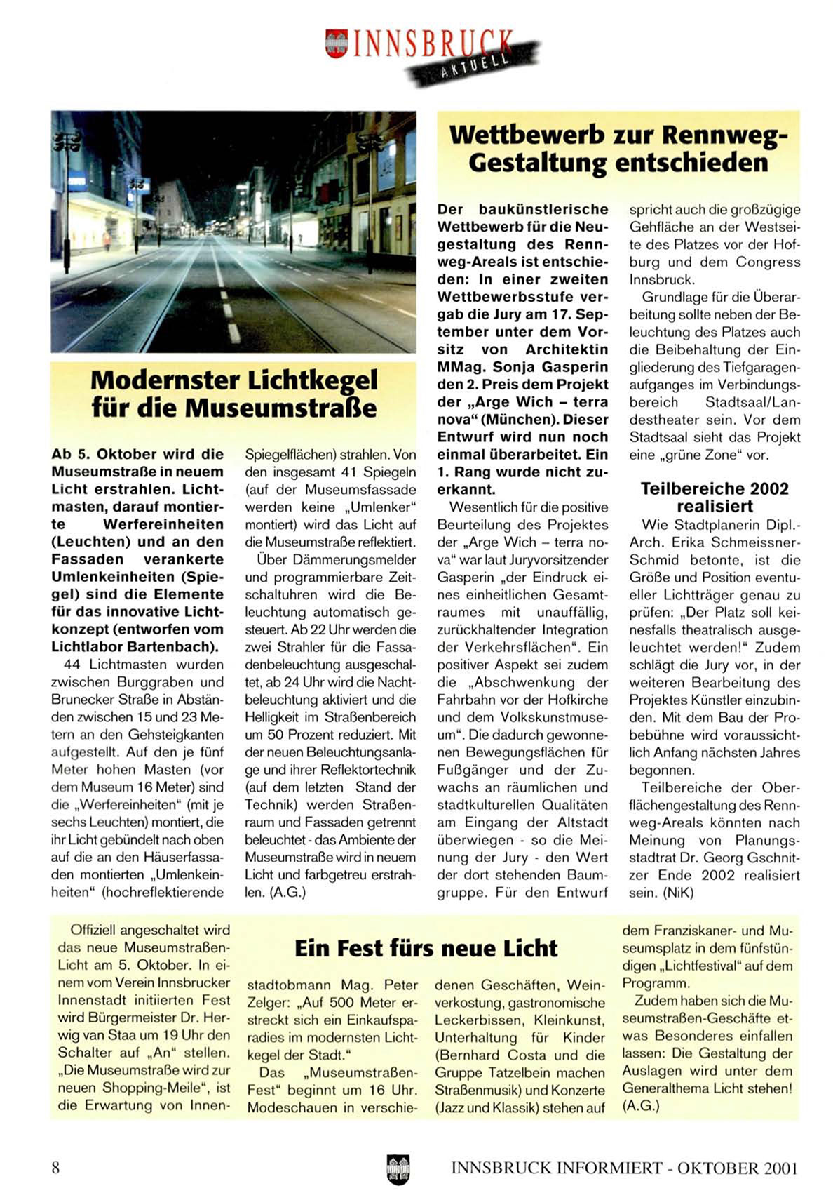 das neue MuseumstraßenLicht am 5. Oktober. In einem vom Verein Innsbrucker