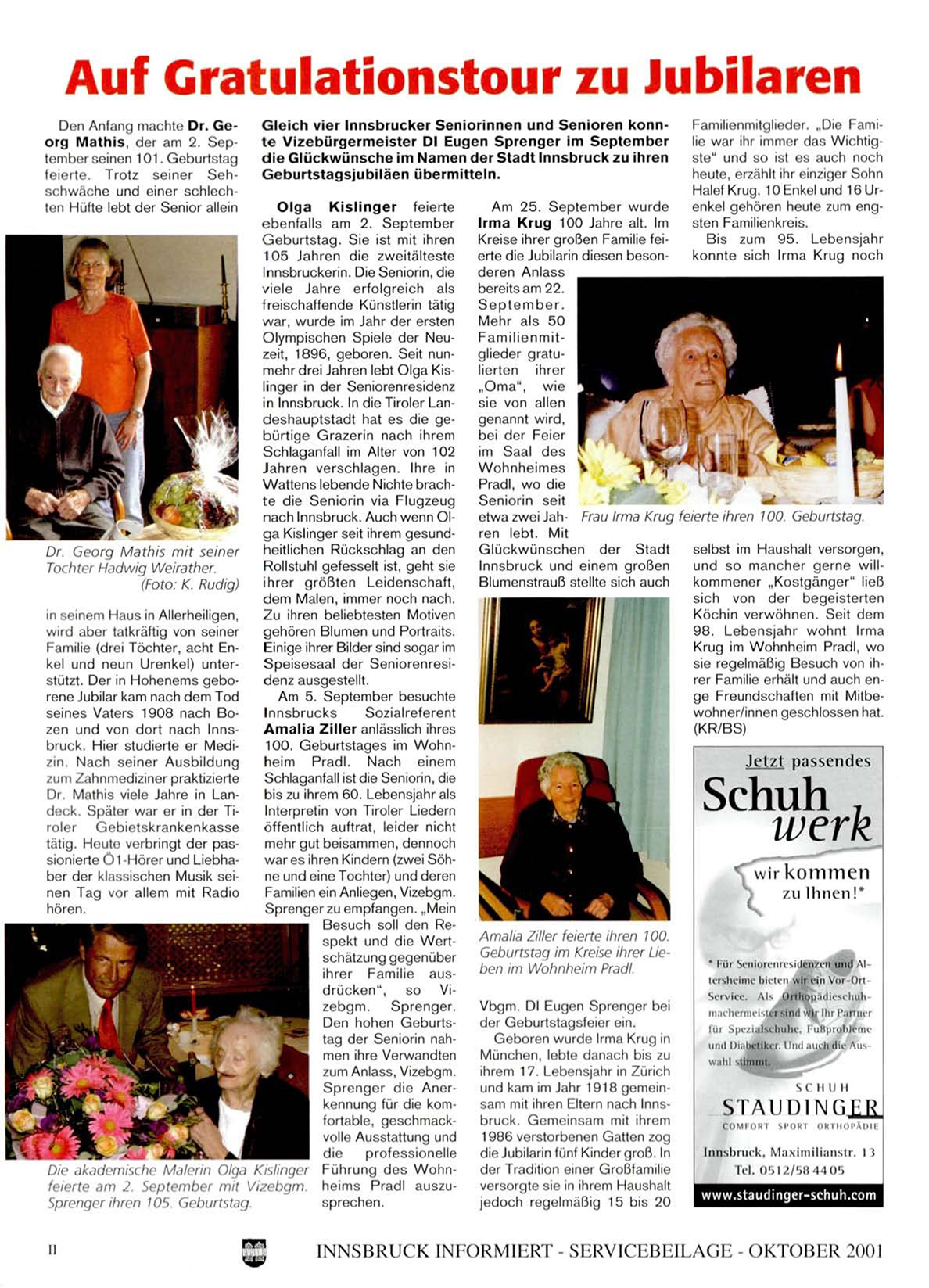 G l e i c h vier I n n s b r u c k e r S e n i o r i n n e n u n d S e n i o r e n k o n n t e V i z e b ü r g e r m e i s t e r DI Eugen S p r e n g e r im S e p t e m b e r