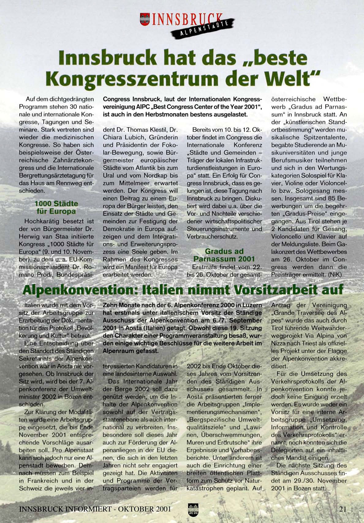 INNSBRUCK INFORMIERT - OKTOBER 2001