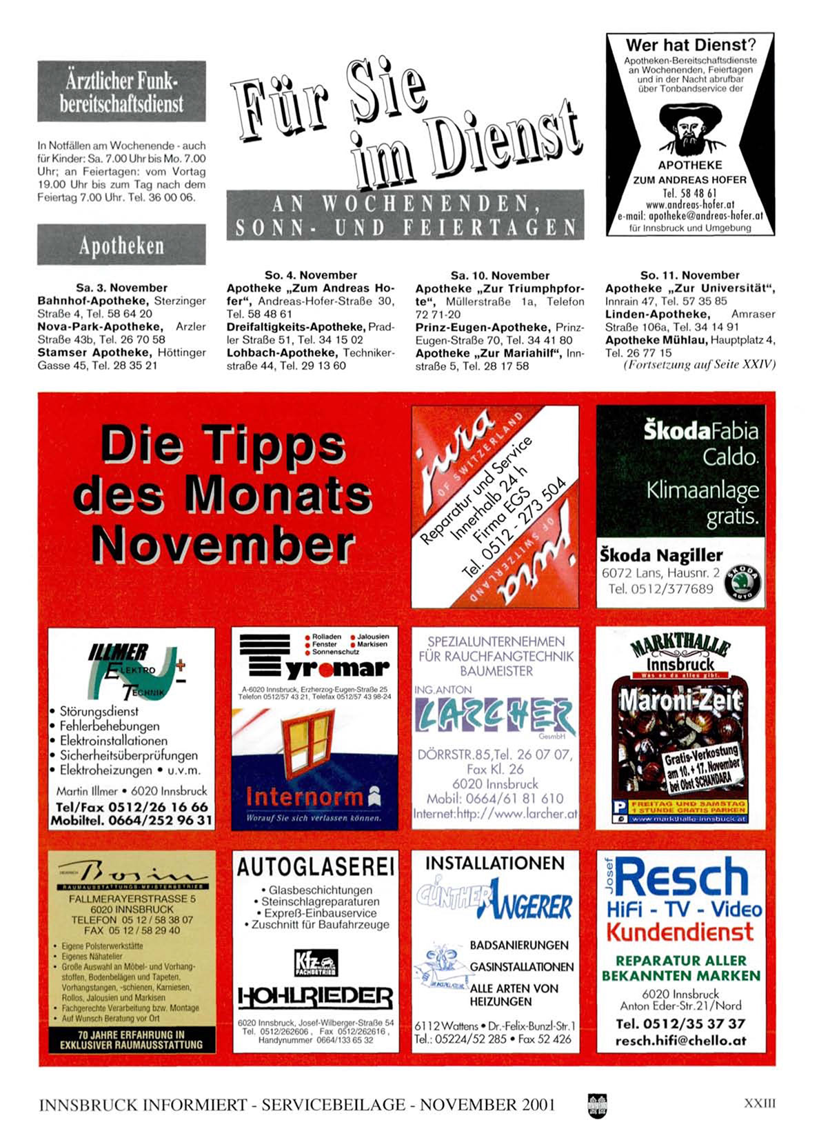 INNSBRUCK INFORMIERT- SERVICEBEILAGE - NOVEMBER 2001