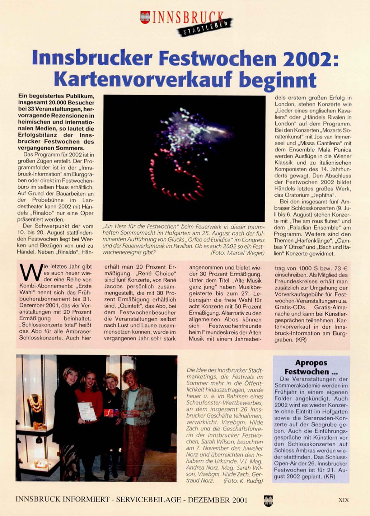 großen Zügen erstellt. Der Programmfolder ist in der „Innsbruck-Information" am Burggraben oder direkt im Festwochenbüro im selben Haus erhältlich.