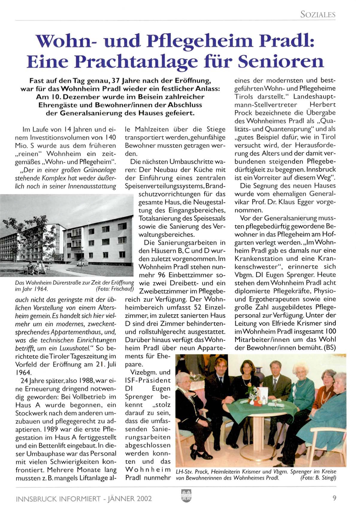 W o h n h e i m Pradl stehen nunV b g m . D I Eugen Sprenger. H e u t e