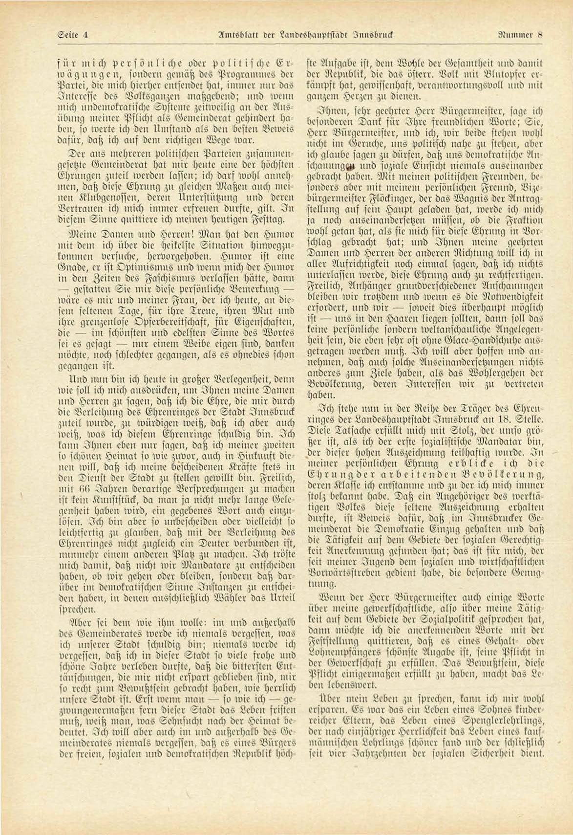 die Verleihung des EhrenringcS der Stadt Innsbruck