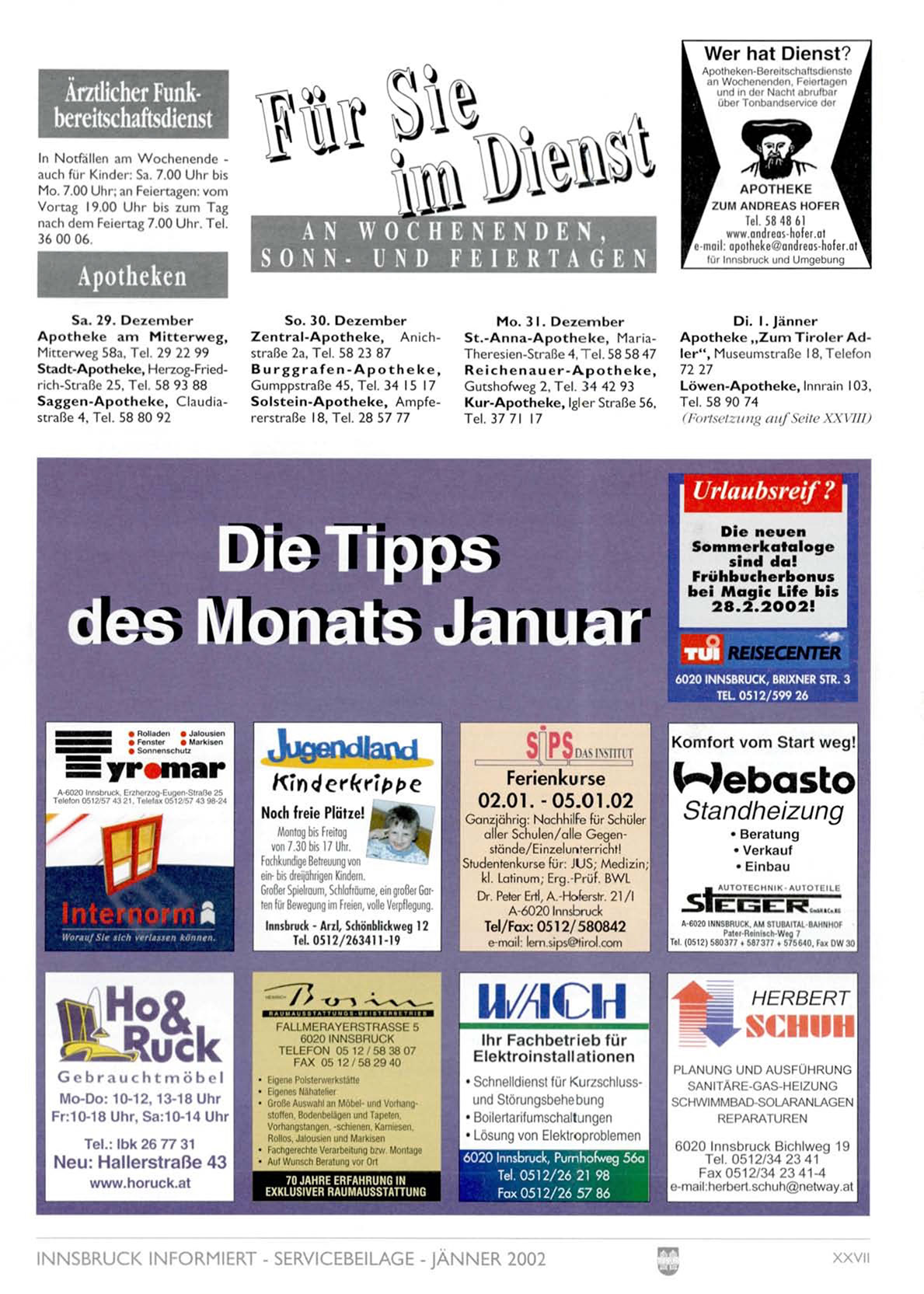 INNSBRUCK INFORMIERT - SERVICEBEILAGE -JÄNNER 2002