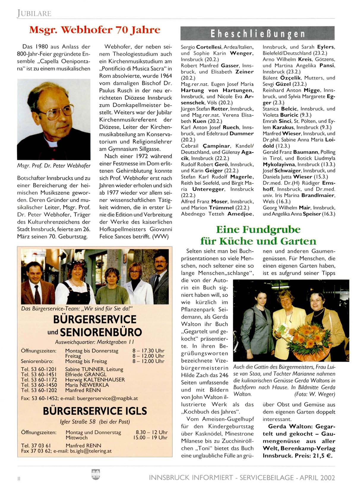 INNSBRUCK INFORMIERT - SERVICEBEILAGE -APRIL 2002