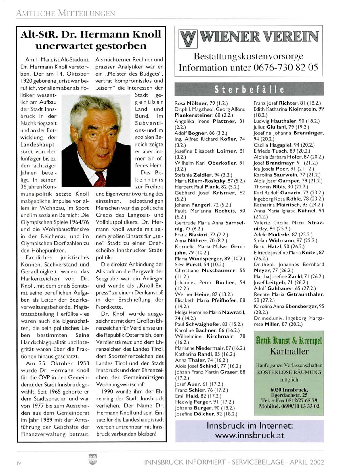 INNSBRUCK INFORMIERT - SERVICEBEILAGE -APRIL 2002