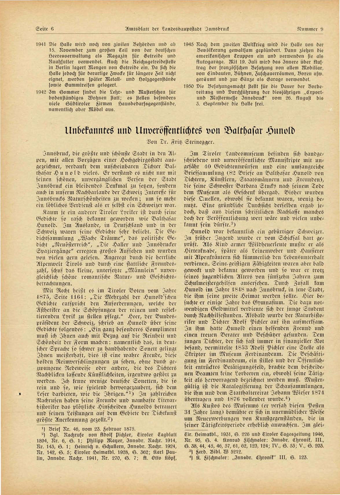 3ir. t)eimatbl., 1931, 6. 226 und Tiroler Tageszeilunq 1946,