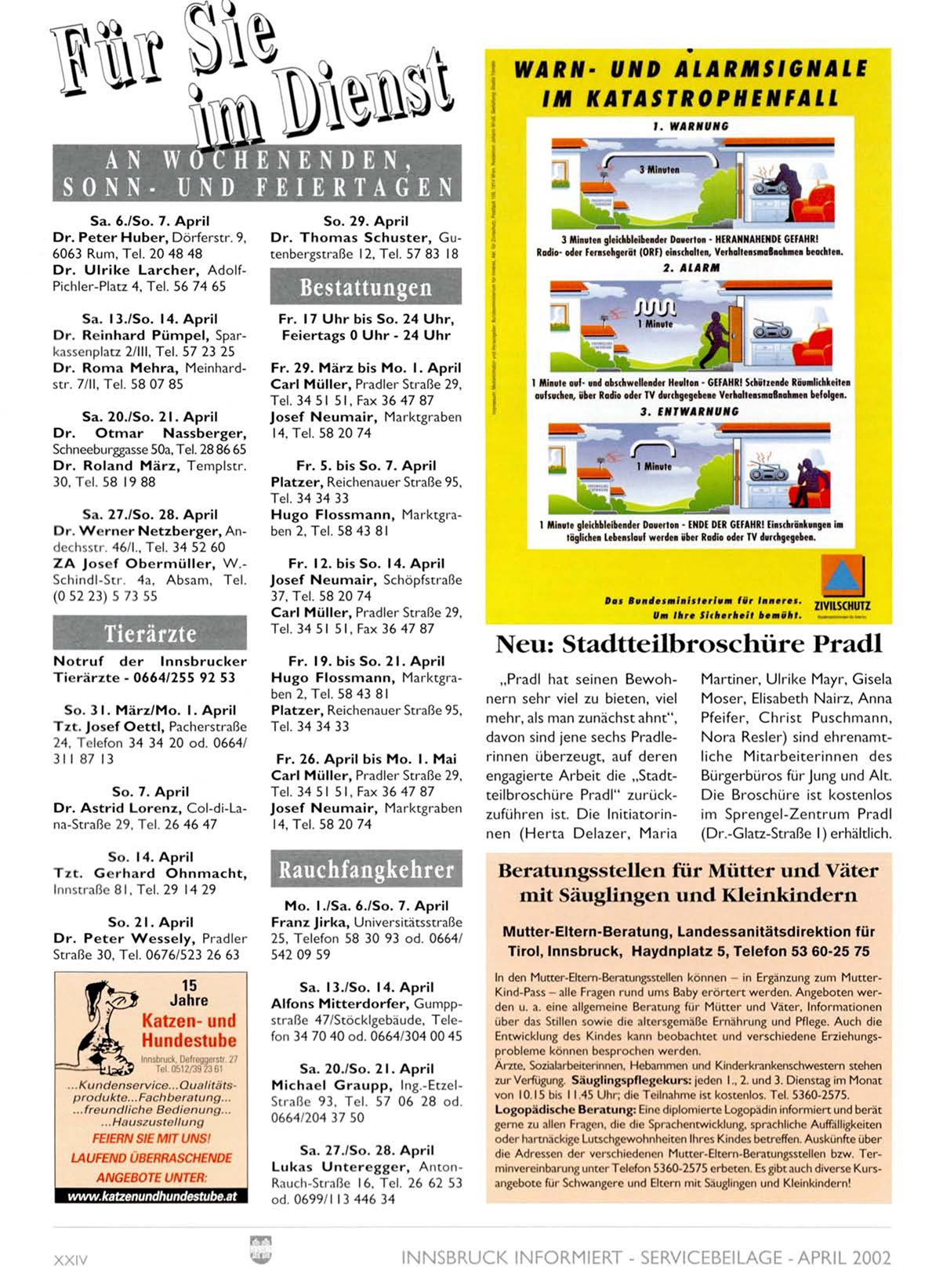 INNSBRUCK INFORMIERT - SERVICEBEILAGE -APRIL 2002