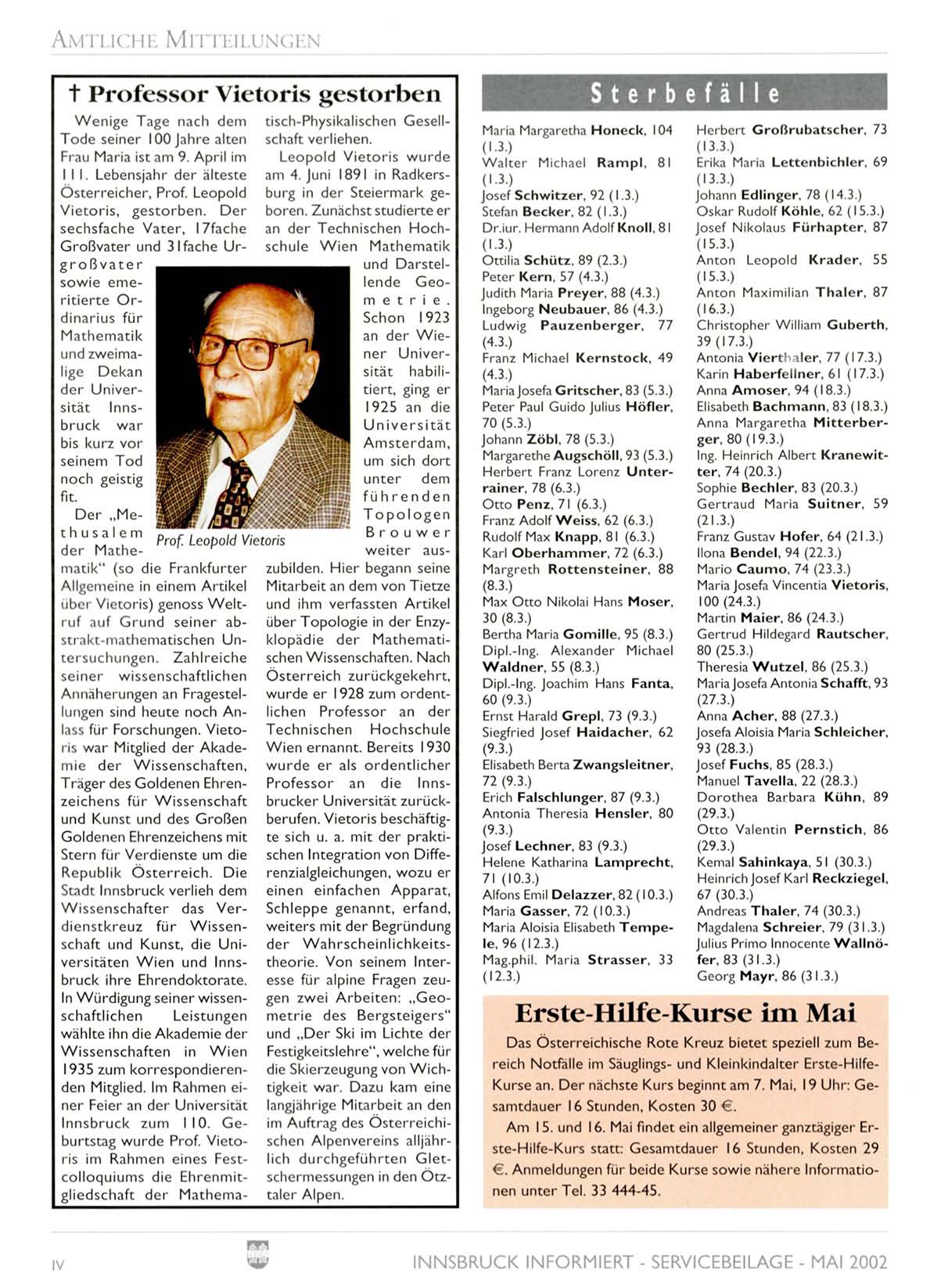INNSBRUCK INFORMIERT - SERVICEBEILAGE - MAI 2002