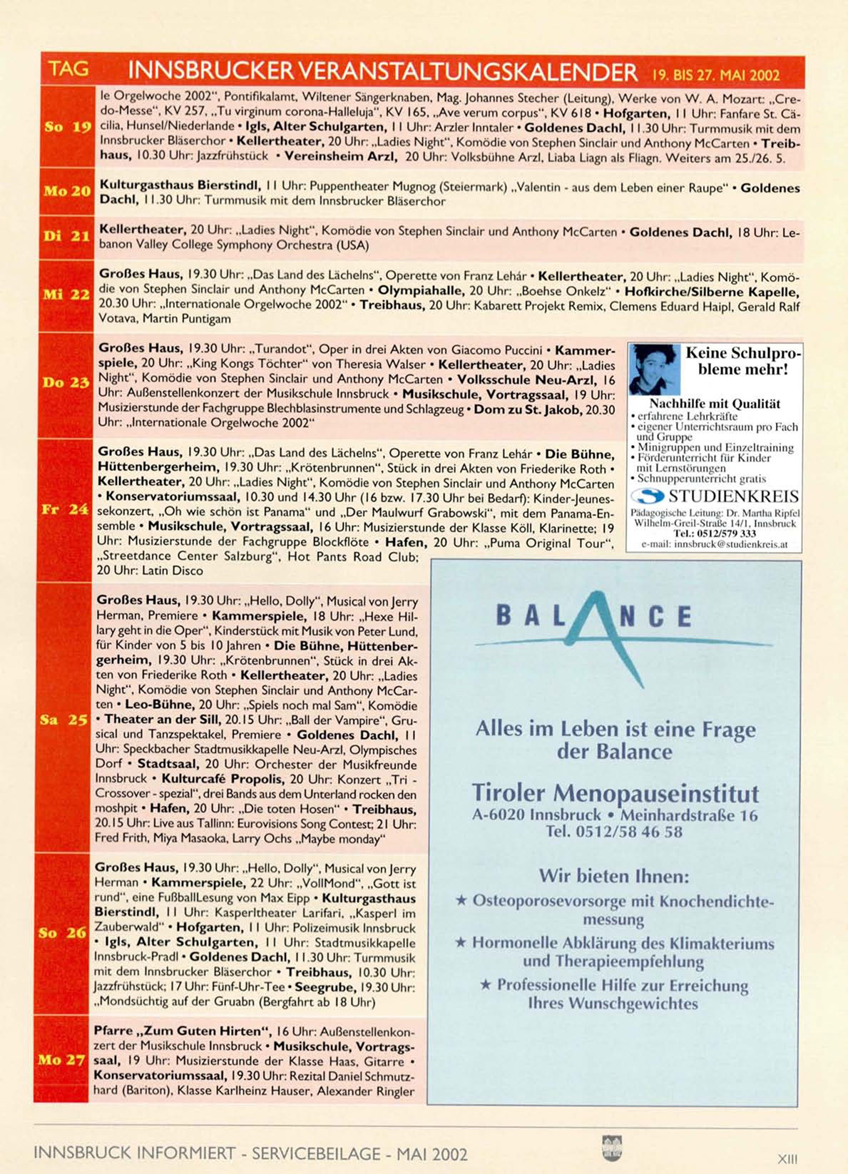 INNSBRUCK INFORMIERT - SERVICEBEILAGE - MAI 2002