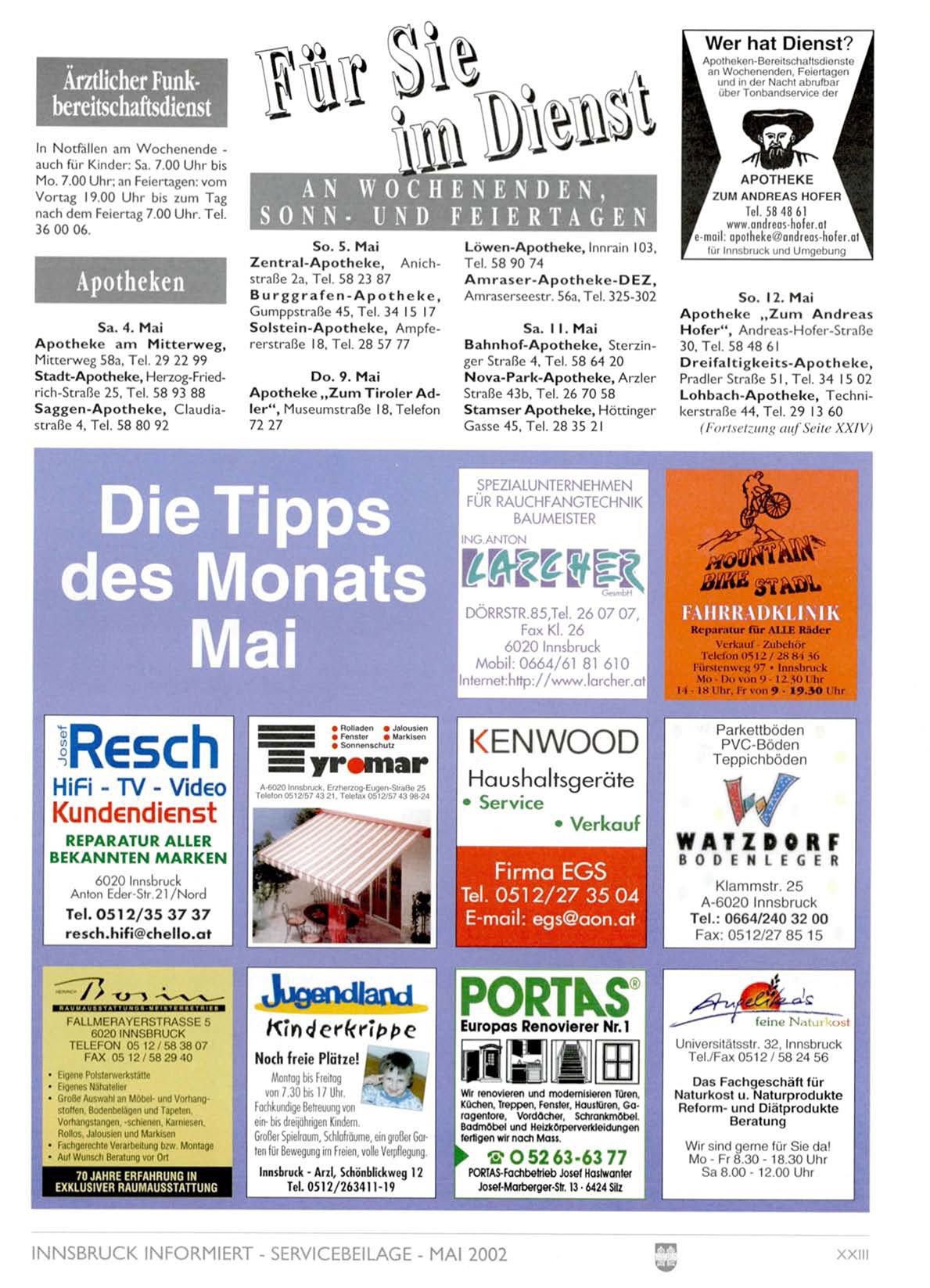 INNSBRUCK INFORMIERT - SERVICEBEILAGE - MAI 2002