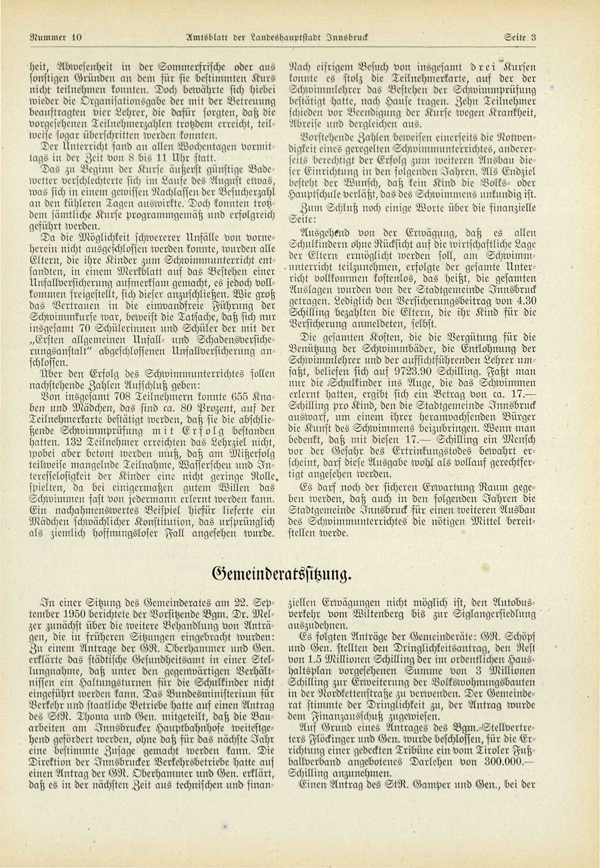 I n einer Sitzung des Gcmeinderates am 22. September 1950 berichtete der Vorsitzende Bgm. D r . M e l