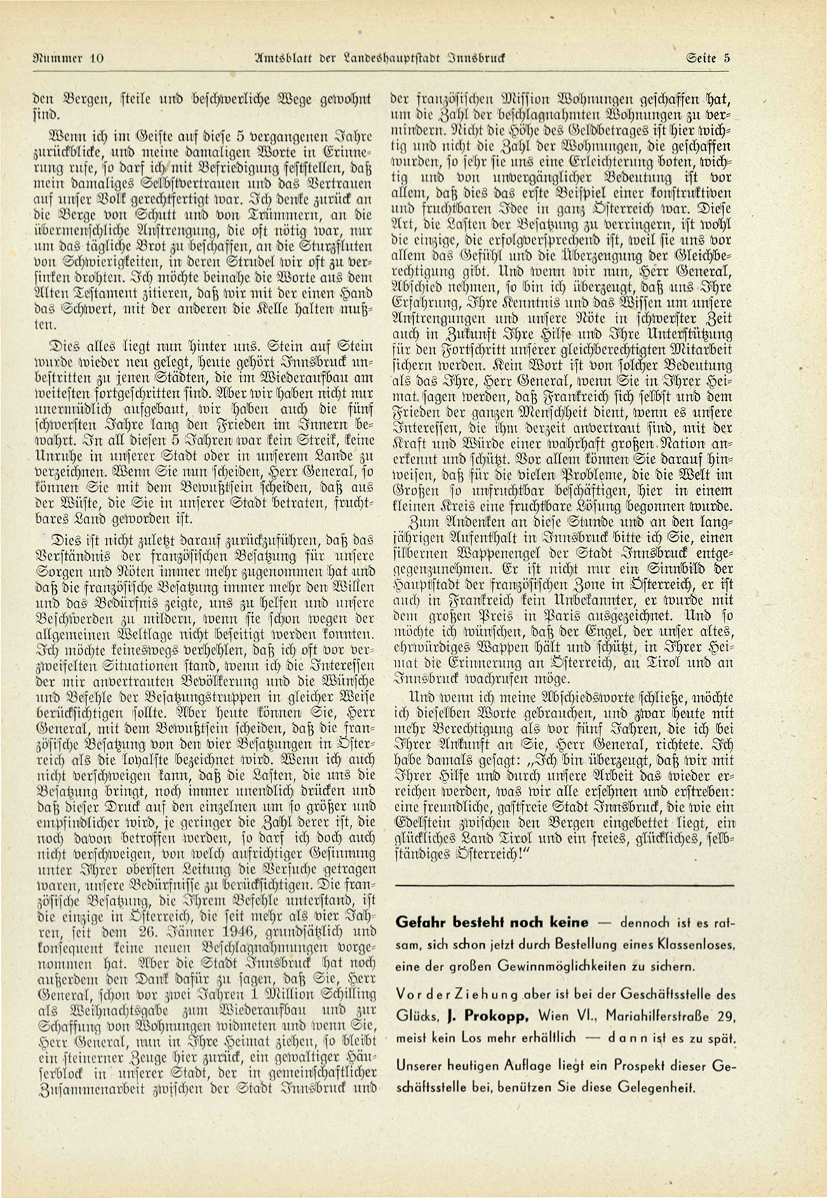 Verständnis der französischen Besatzung "für unsere silbernen Wappcncngcl der Stadt Innsbruck entgeBorgen und Nöten immer mehr zugenommen hat und gegen zunehmen. Er ist nicht nur ein Sinnbild der