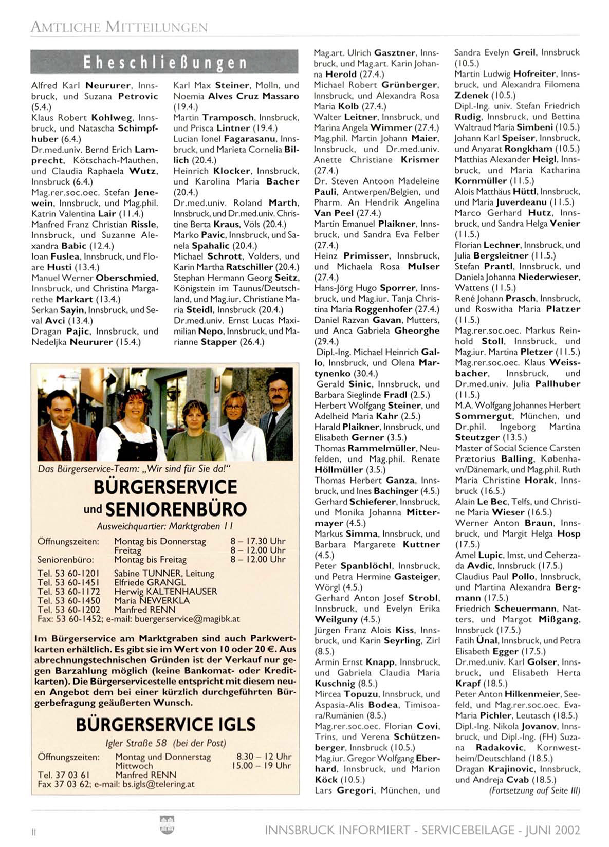 INNSBRUCK INFORMIERT - SERVICEBEILAGE -JUNI 2002